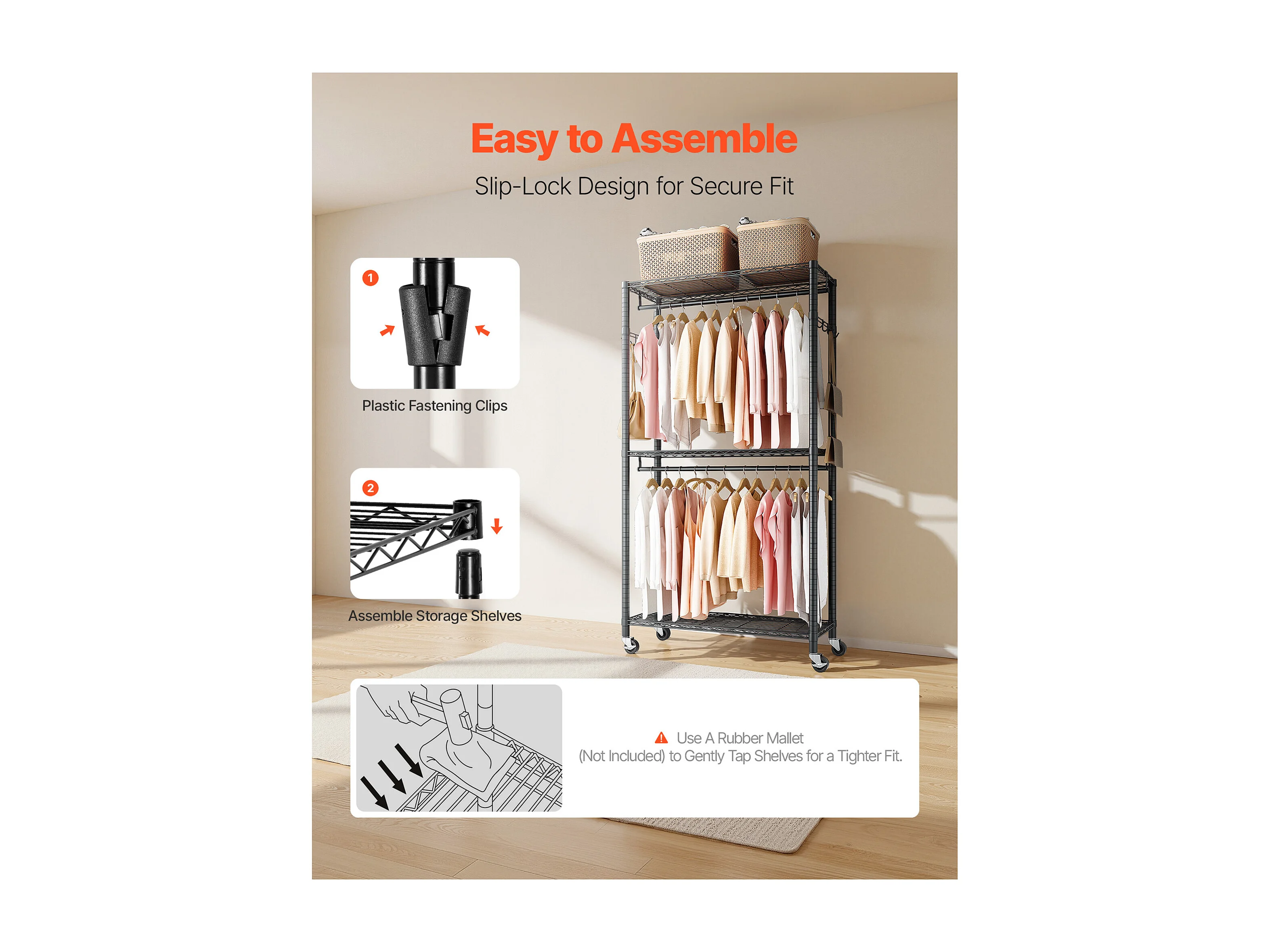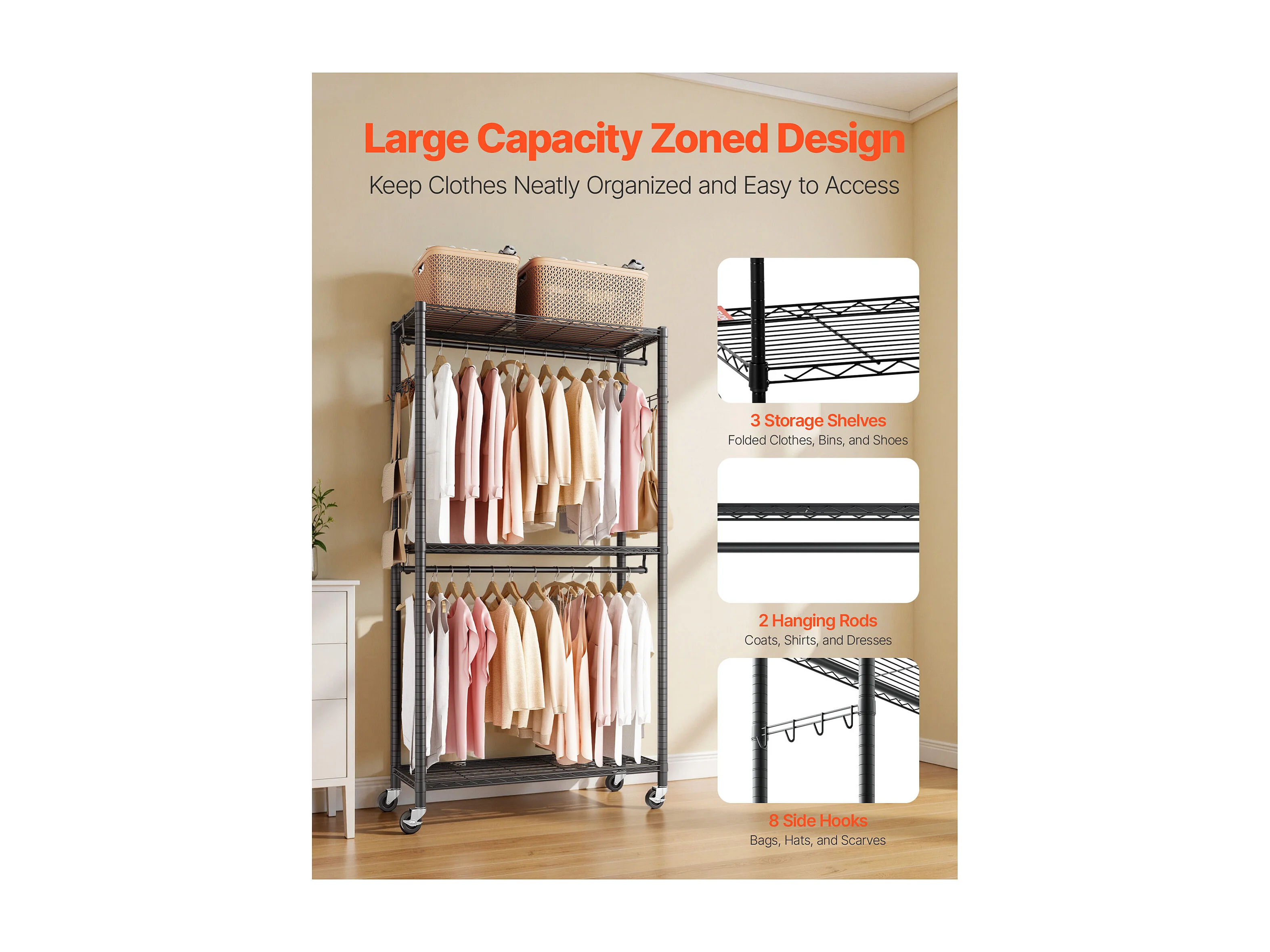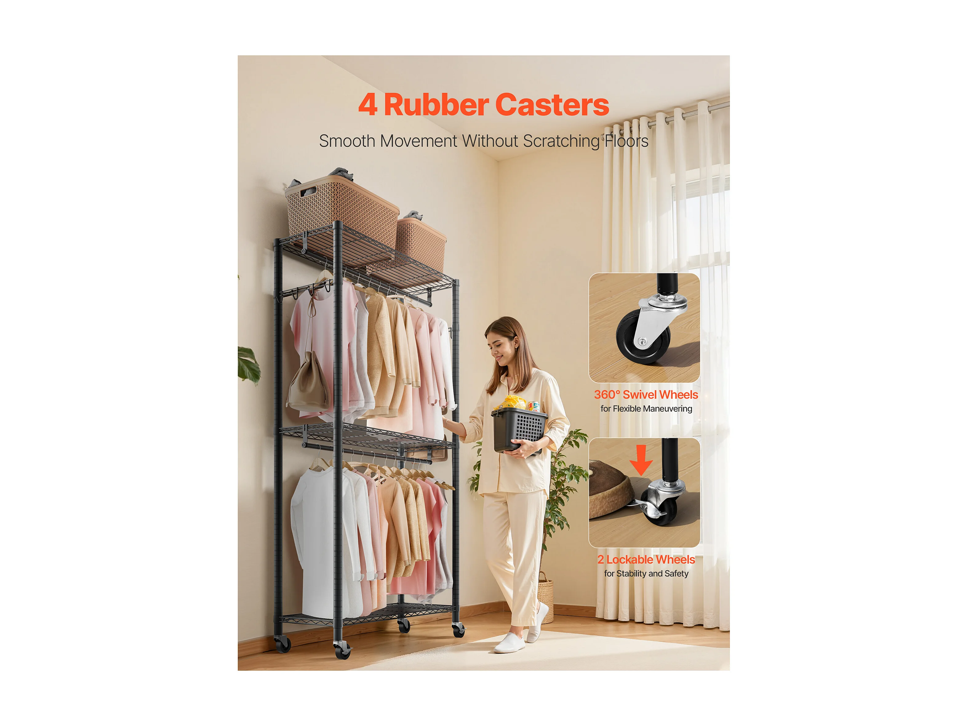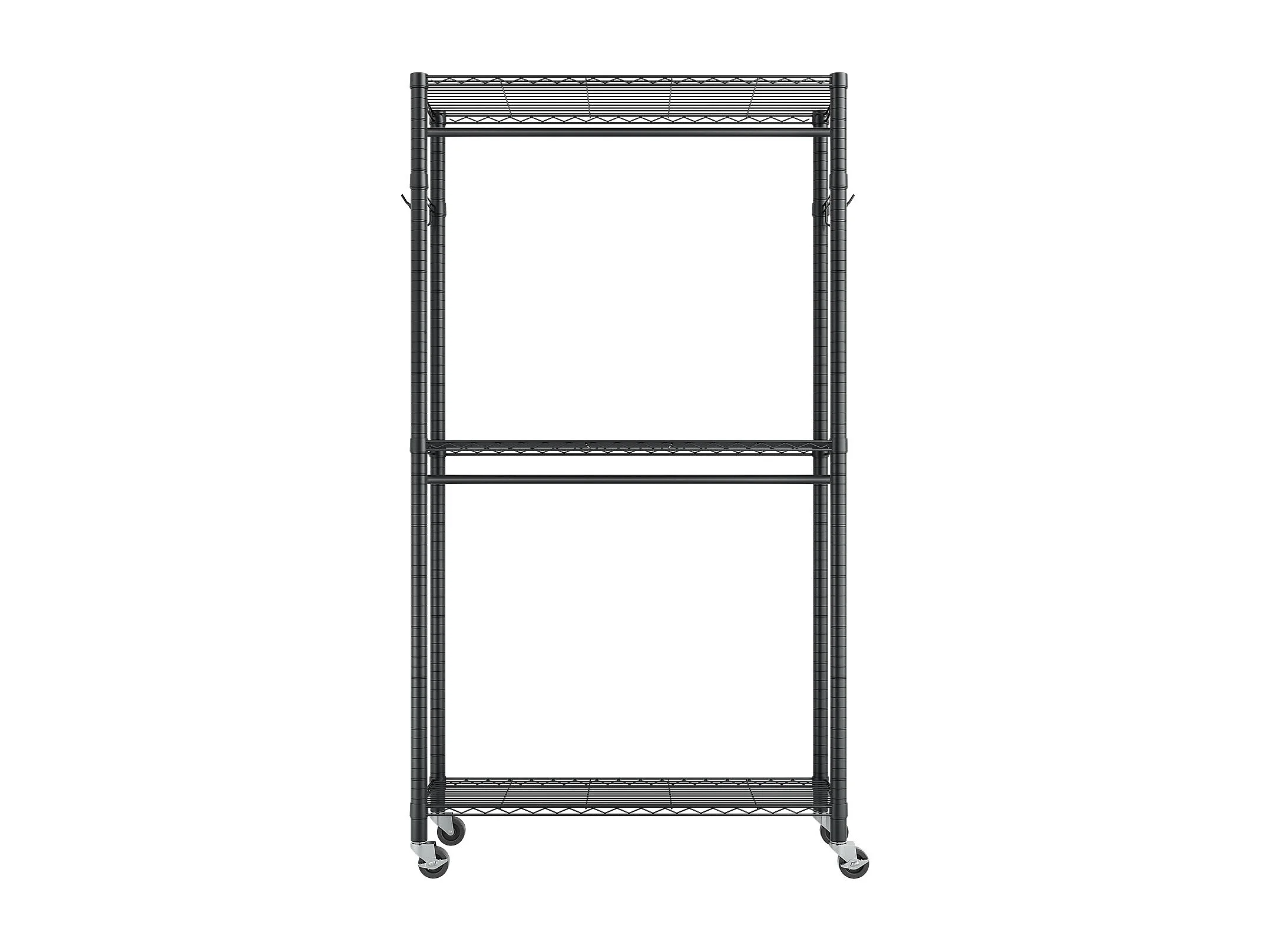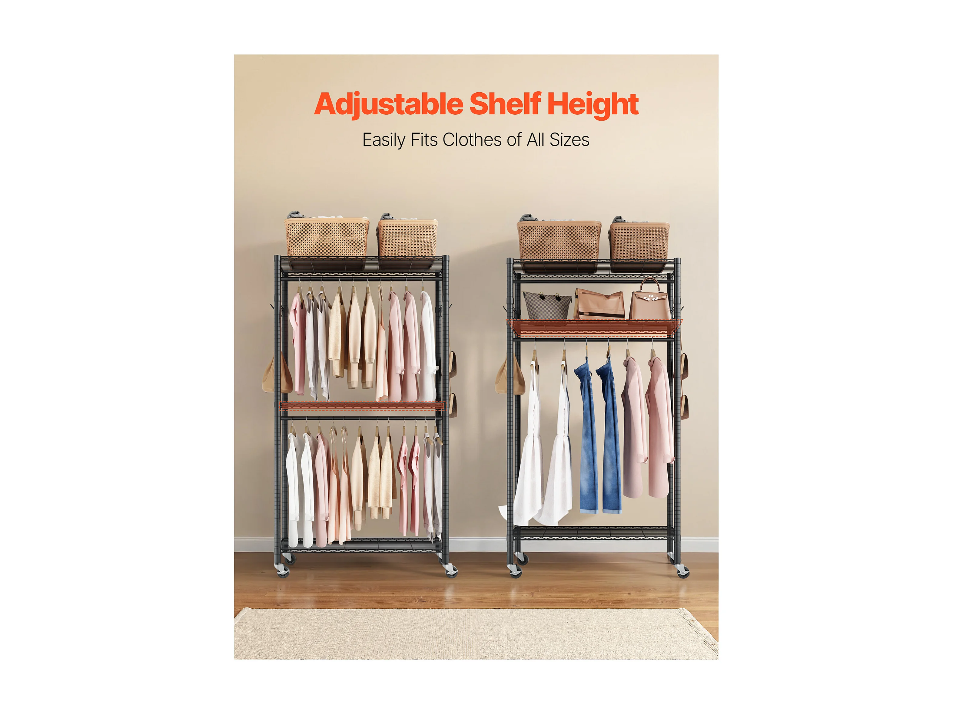 Portant à Vêtements Mobile SucceBuy , Portemanteau sur Roulettes à 3 Étagères Réglables, Penderie à Vêtements en Acier au Carbone, Capacité de Charge 204 kg
