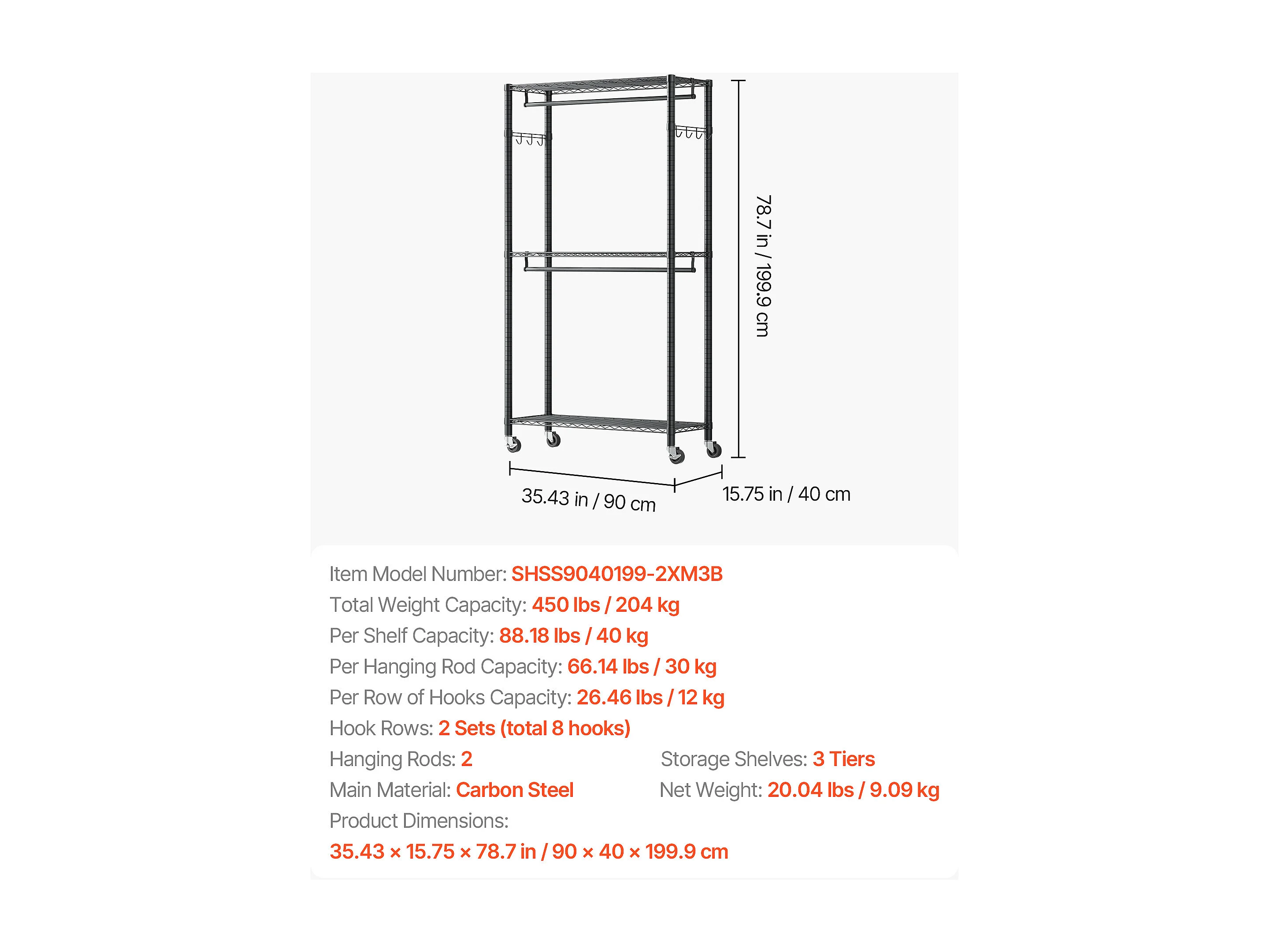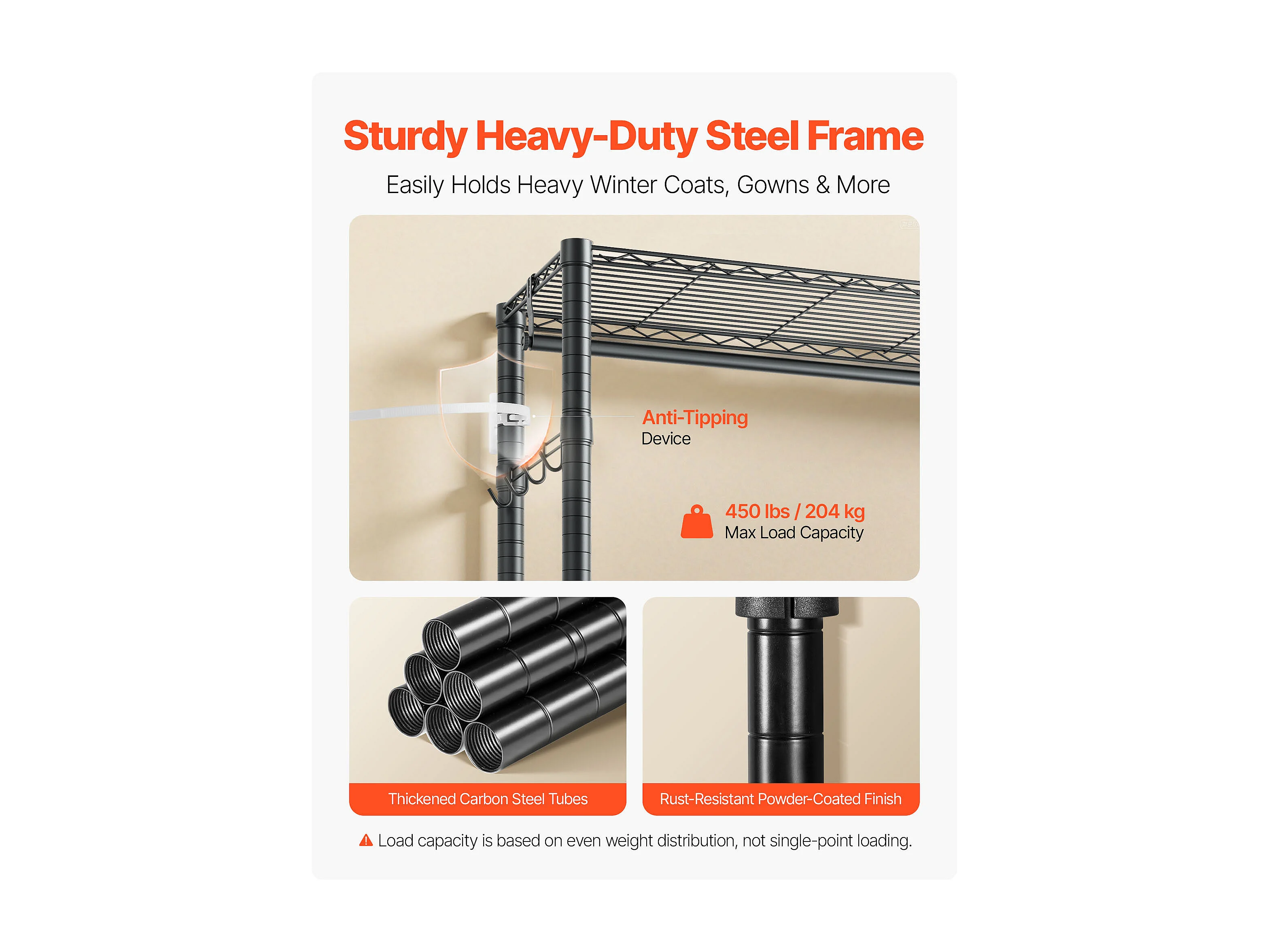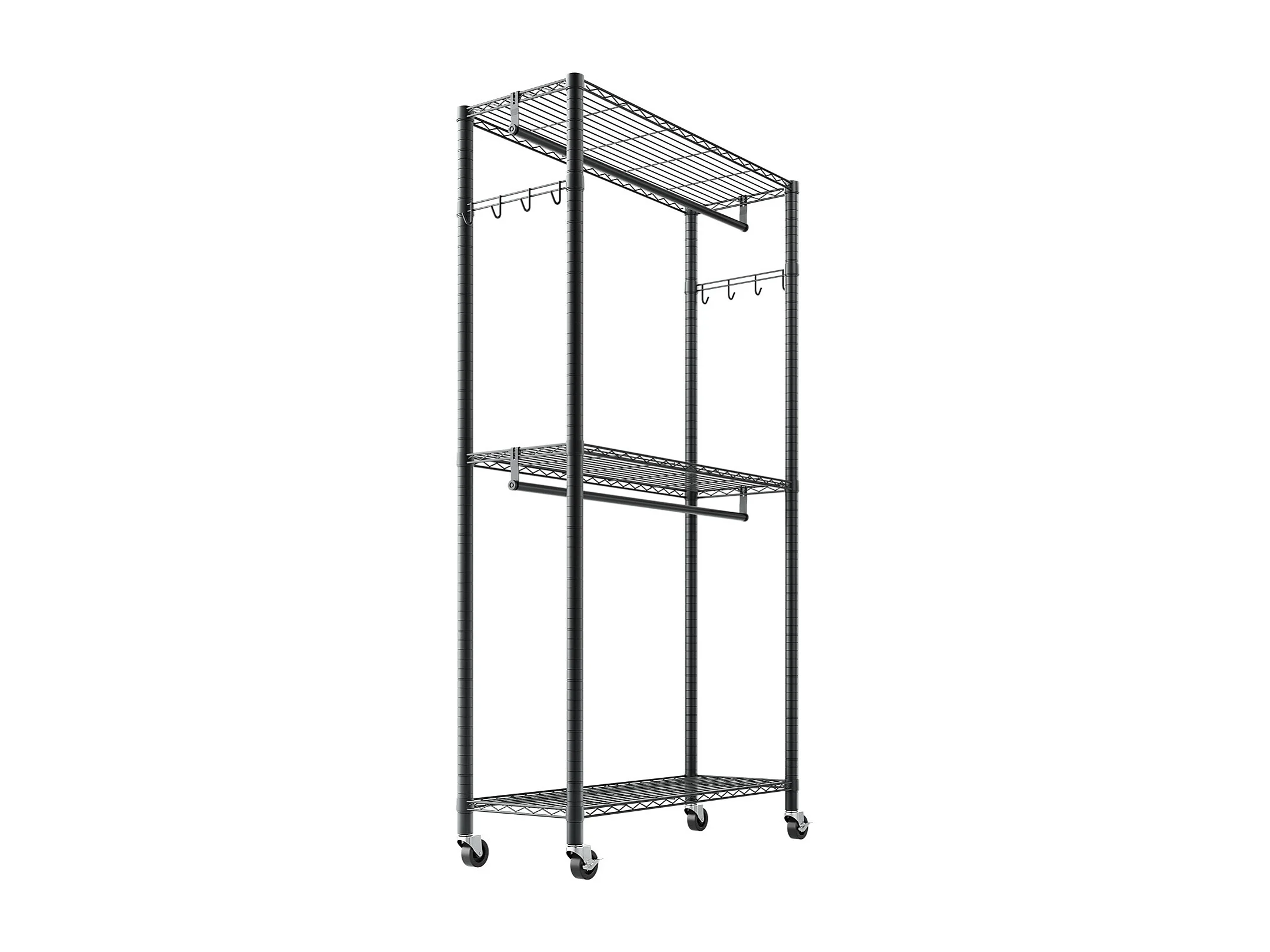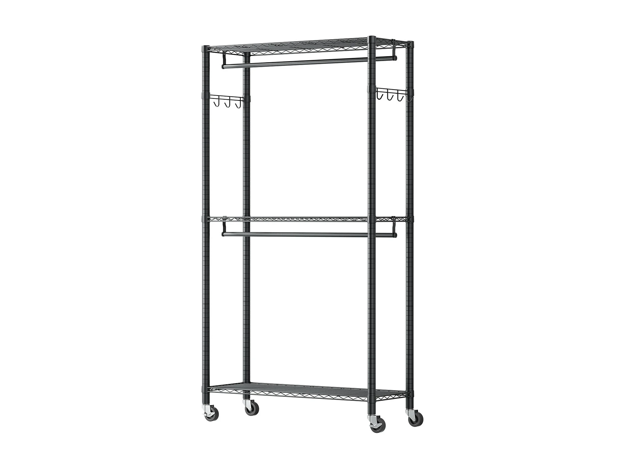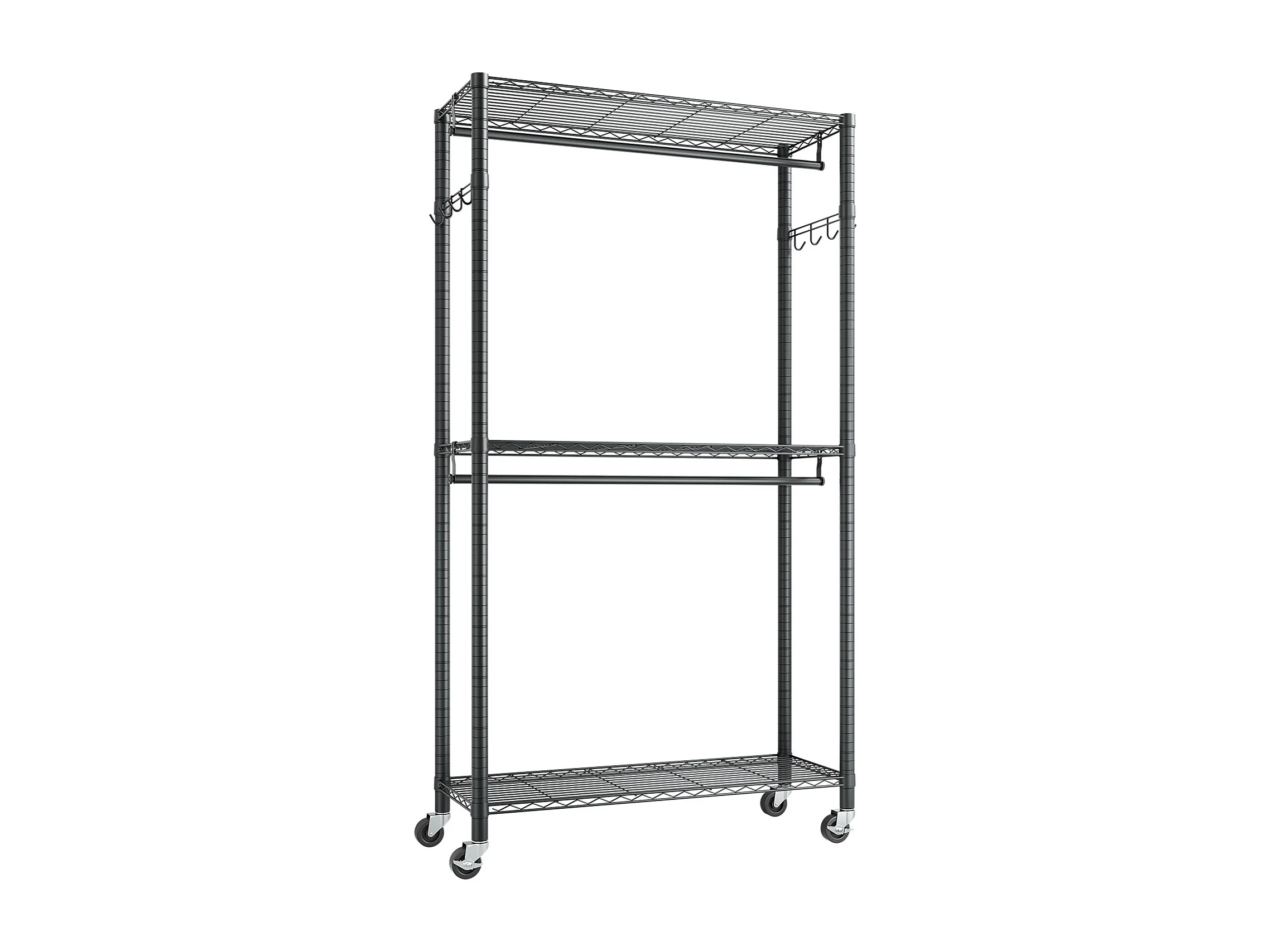 Portant à Vêtements Mobile SucceBuy , Portemanteau sur Roulettes à 3 Étagères Réglables, Penderie à Vêtements en Acier au Carbone, Capacité de Charge 204 kg