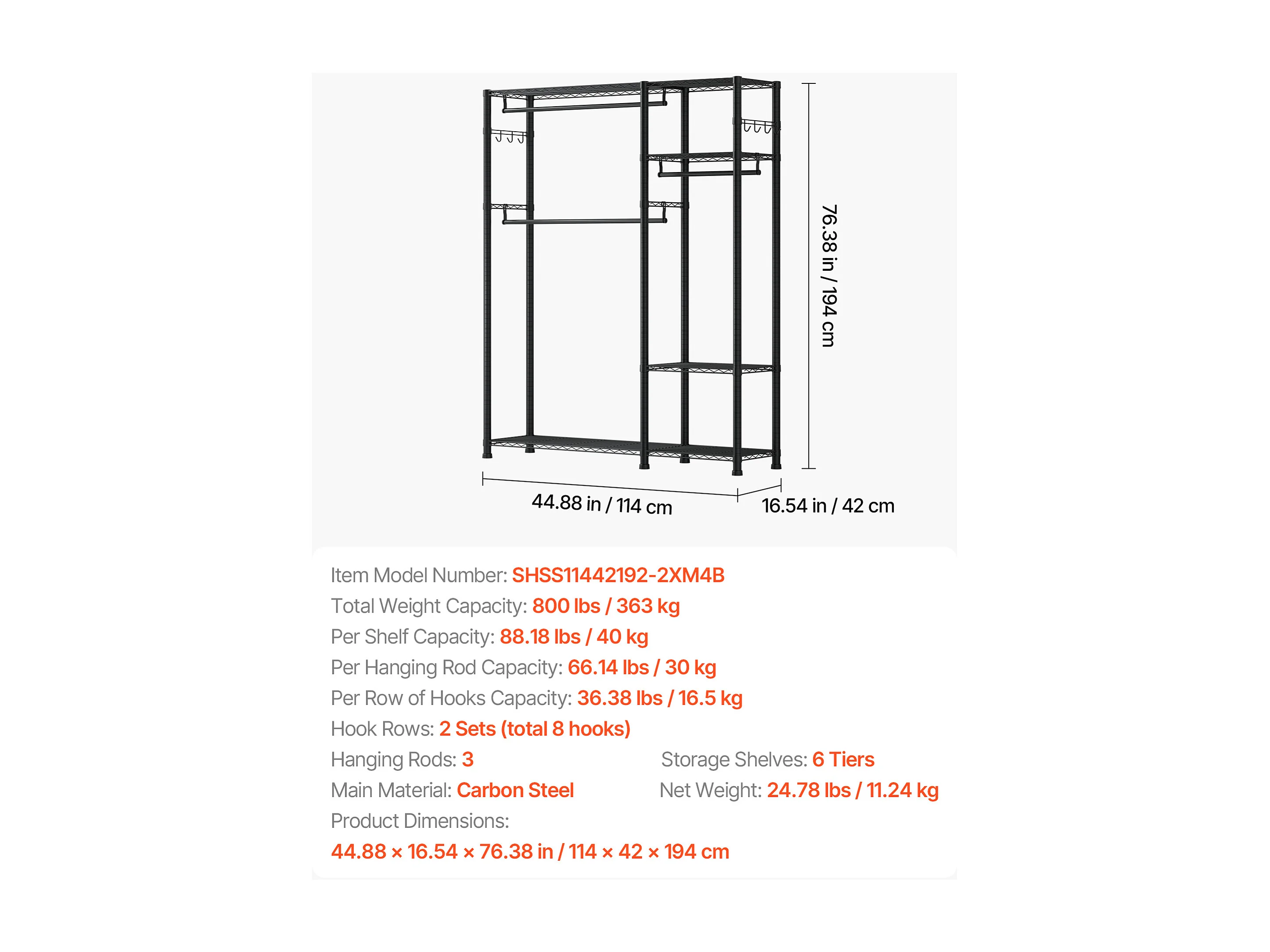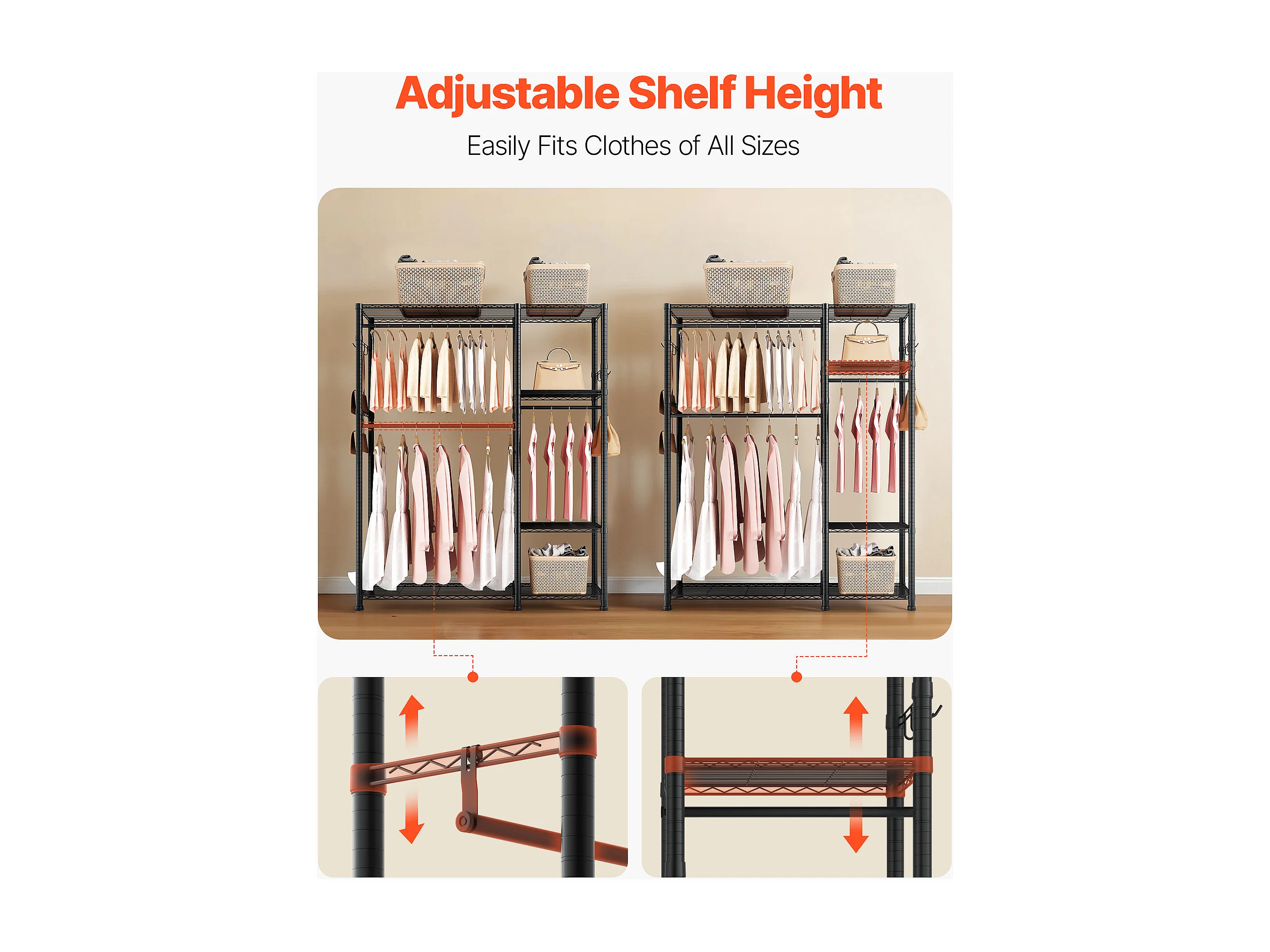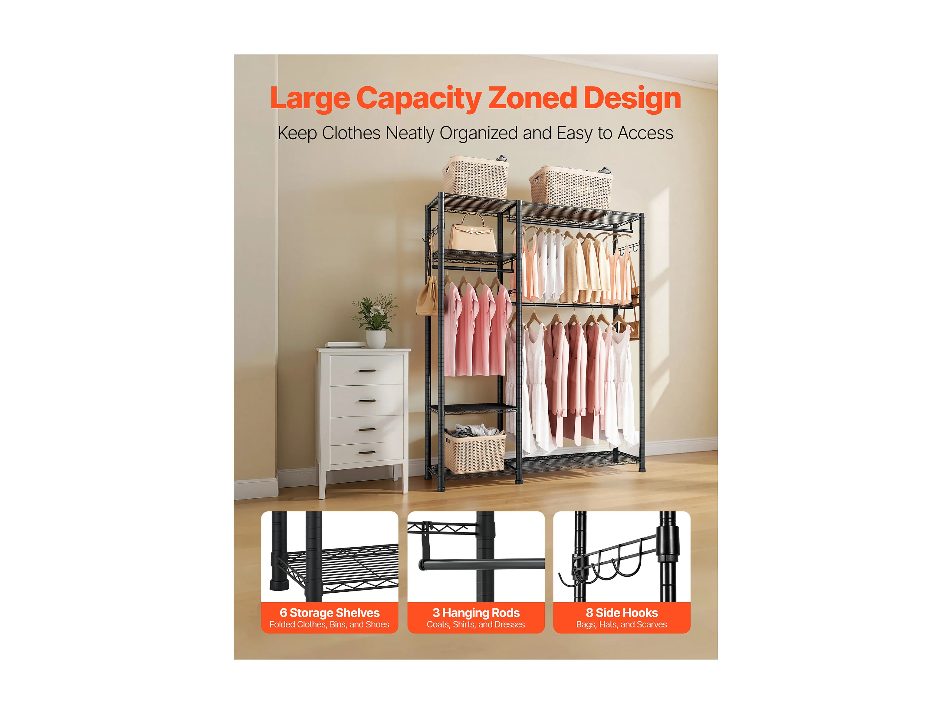 Portant à Vêtements SucceBuy avec 6 Étagères Réglables, Portemanteau avec Cadre en Acier, Penderie à Vêtements Capacité de Charge 363 kg, avec 3 Tringles