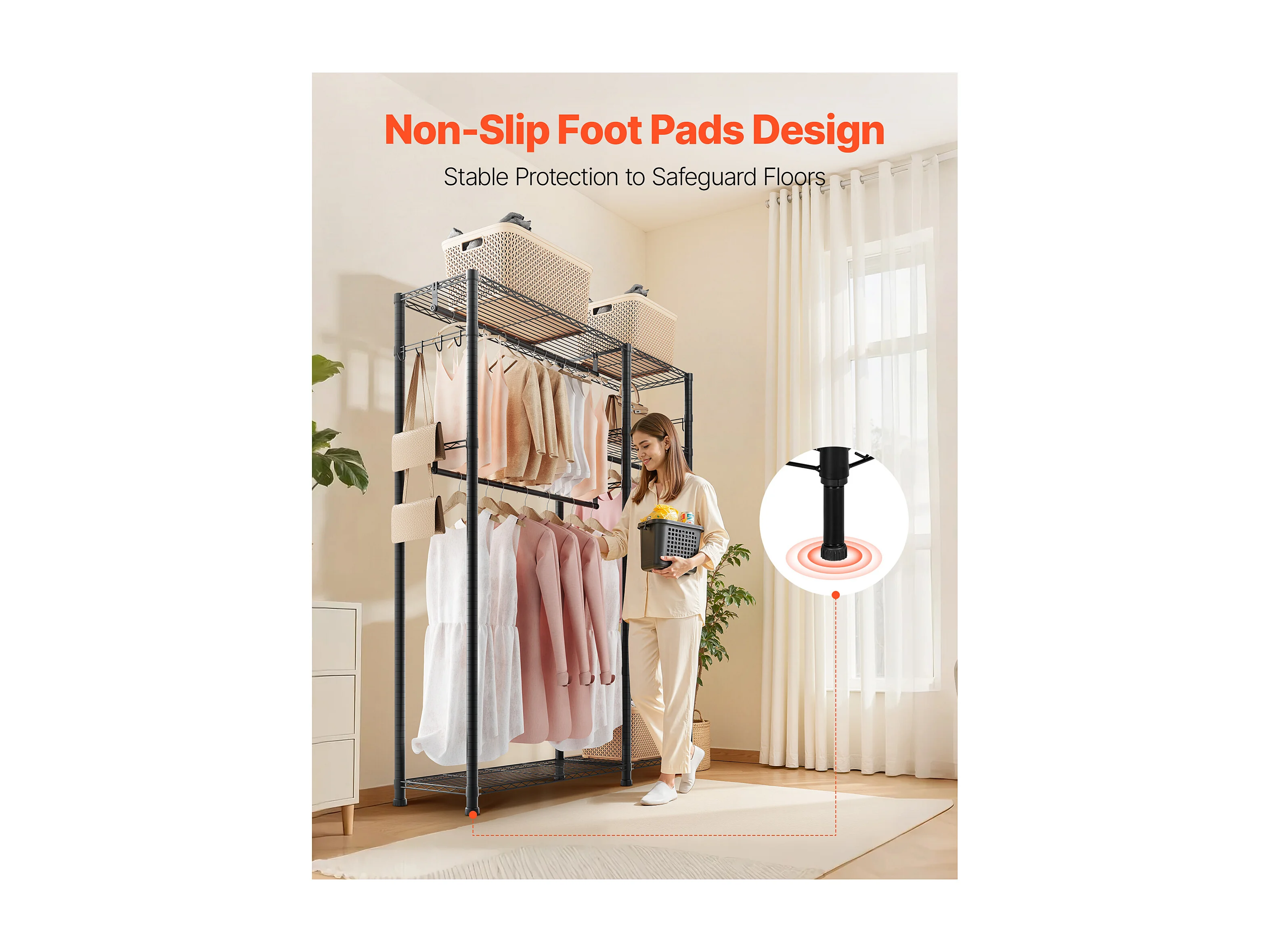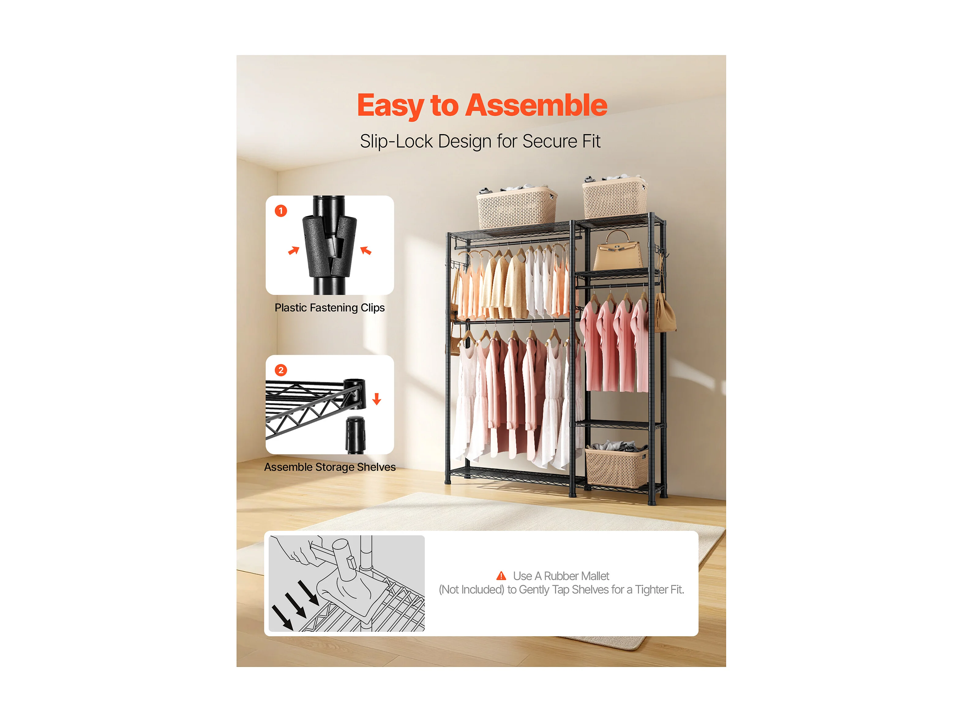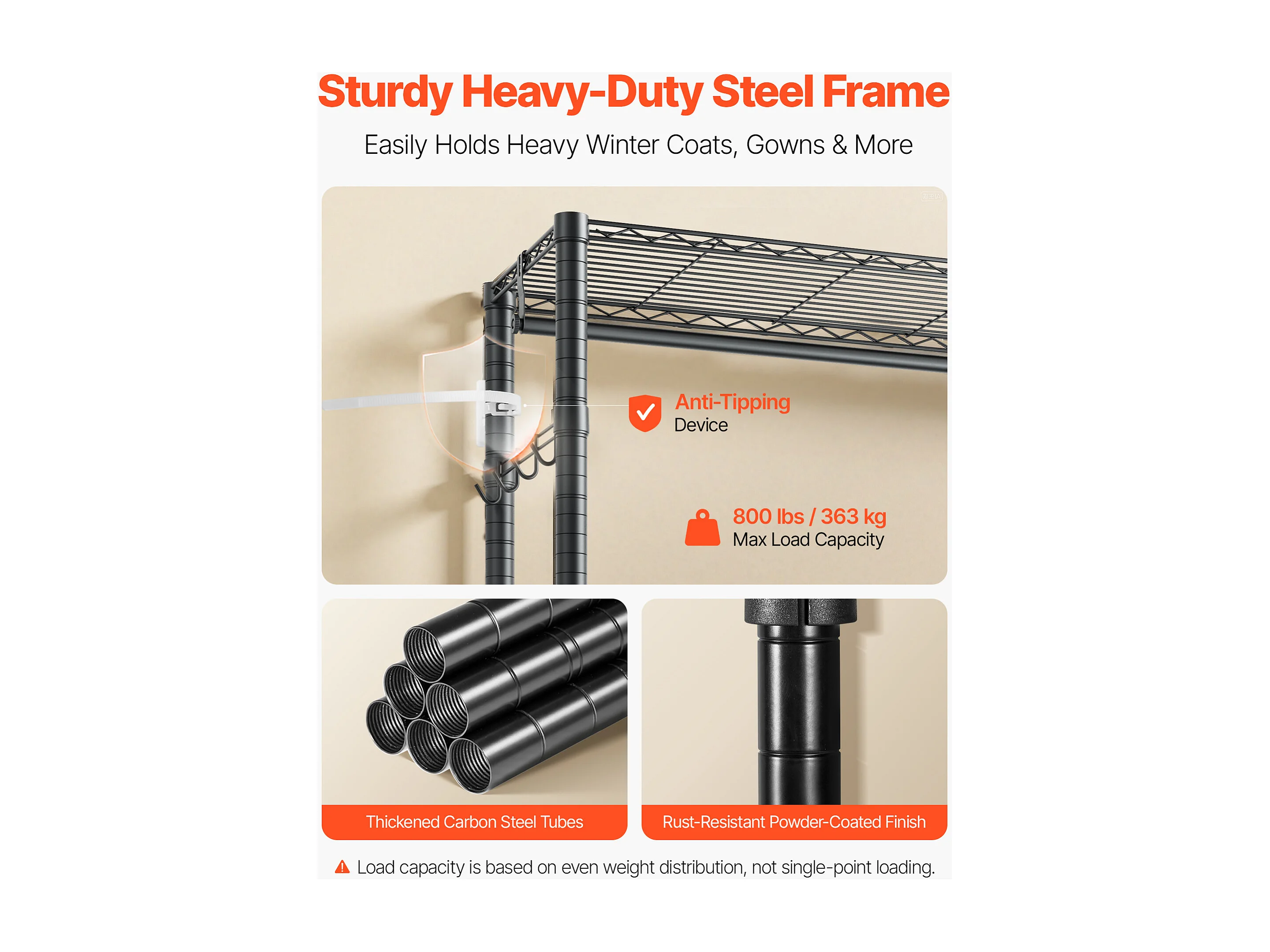 Portant à Vêtements SucceBuy avec 6 Étagères Réglables, Portemanteau avec Cadre en Acier, Penderie à Vêtements Capacité de Charge 363 kg, avec 3 Tringles