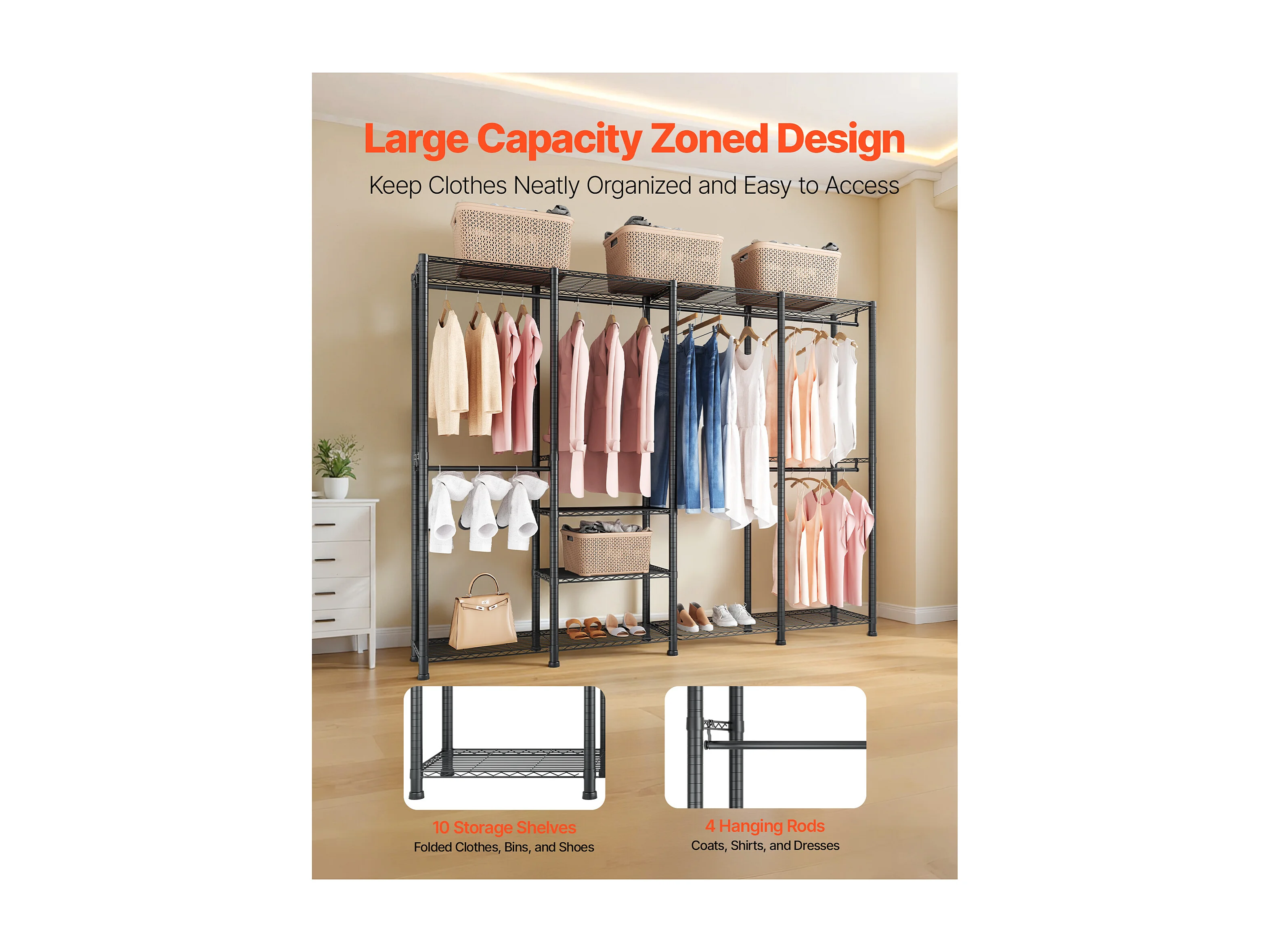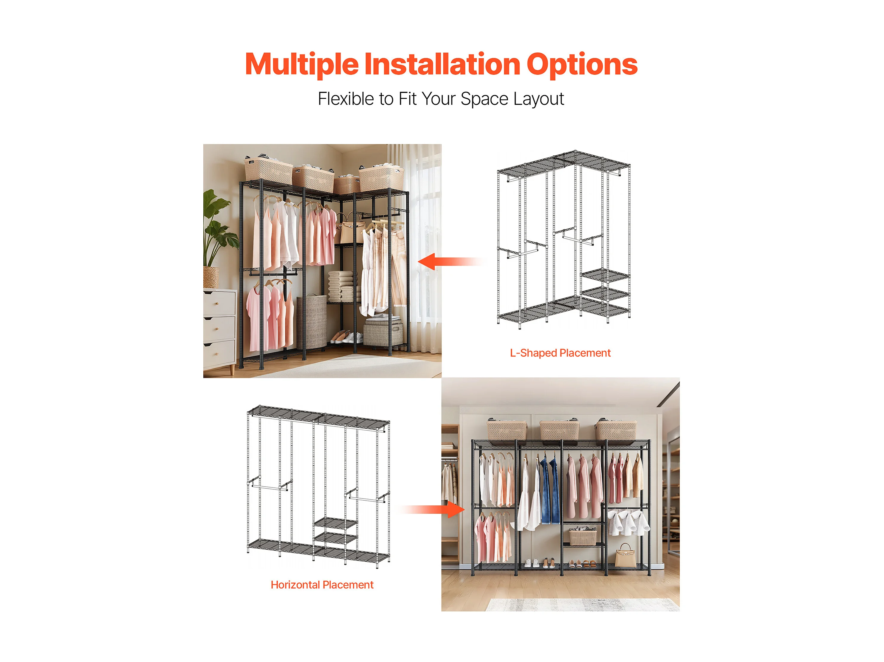 Portant à Vêtements SucceBuy avec Étagères Réglables, Portemanteau avec Cadre en Acier, Penderie à Vêtements Capacité de Charge 499 kg, avec 4 Tringles