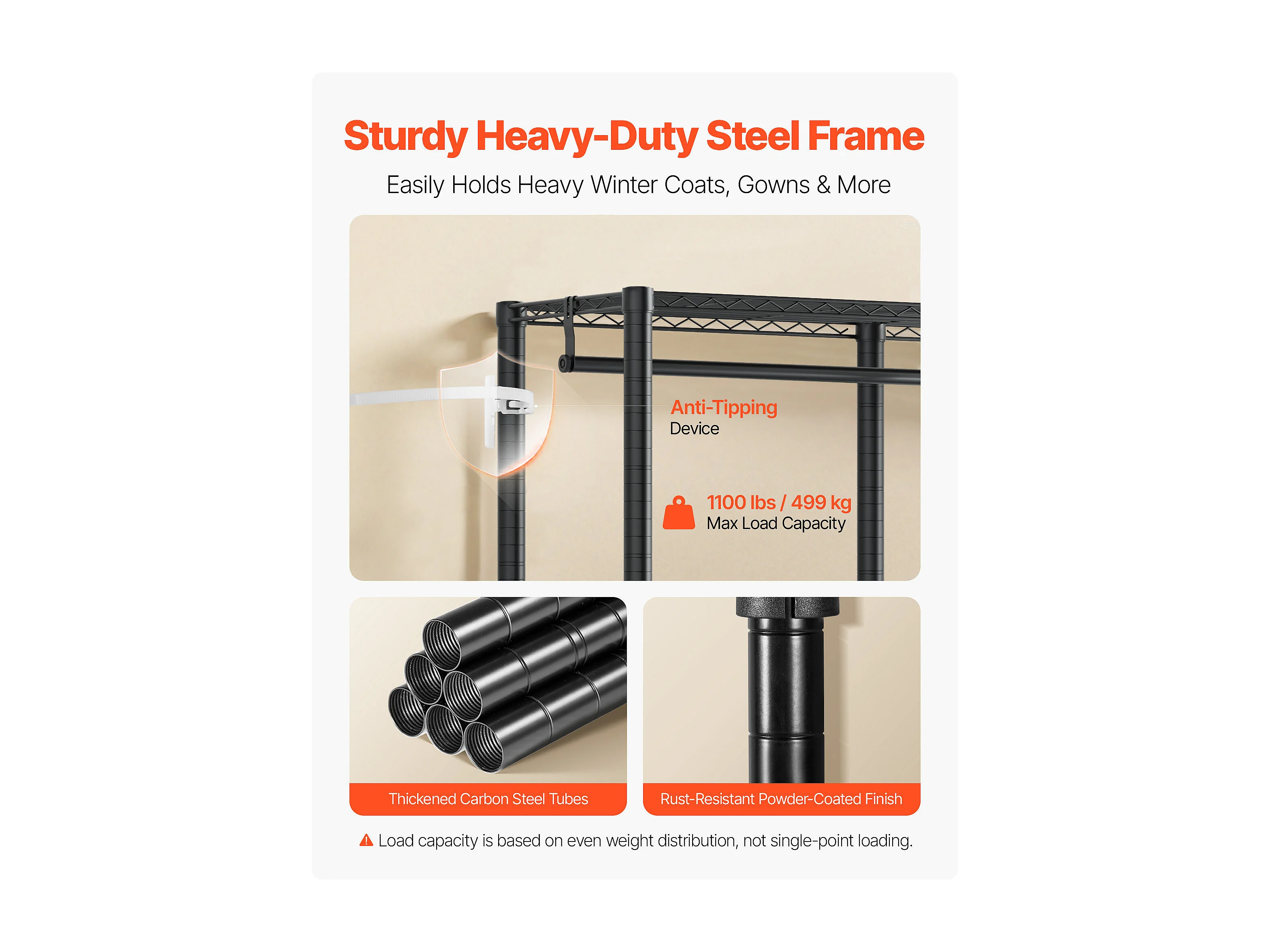 Portant à Vêtements Autoportant SucceBuy, Portemanteau avec Cadre en Acier, Penderie à Vêtements avec Capacité de Charge de 363 kg, avec Tringles