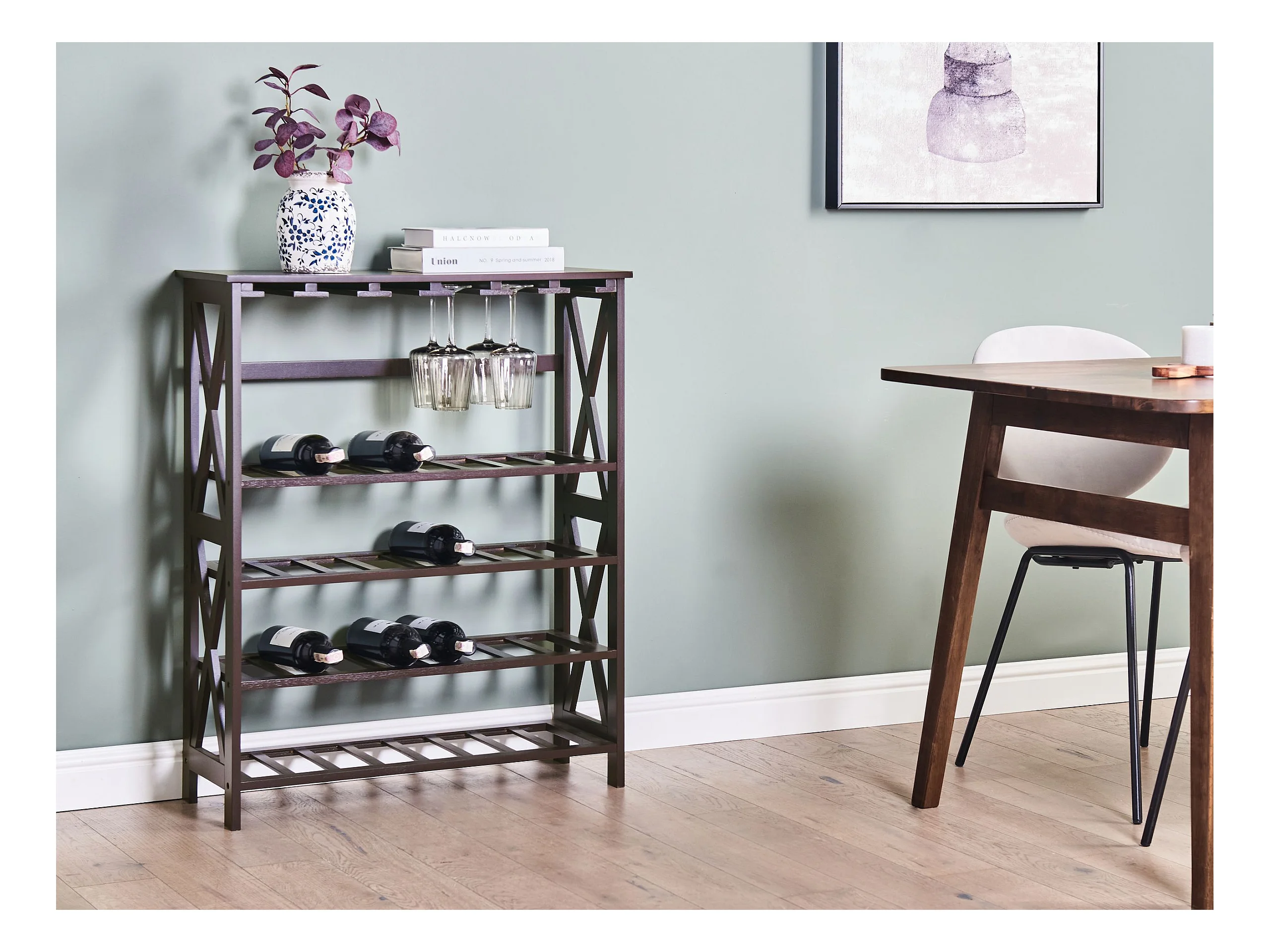 Table de Bar en Forme de L, 3 Tiers Liquor Table de bistrot avec étagère à vin et Support pour Les Verres à vin, Brun Rustique