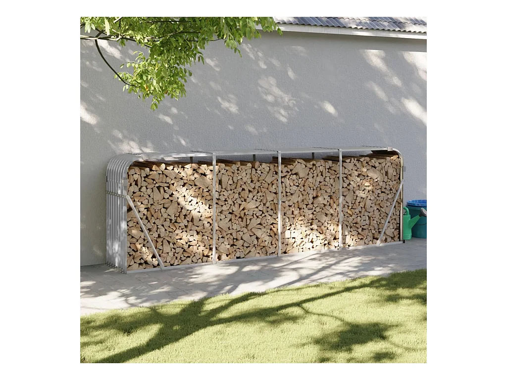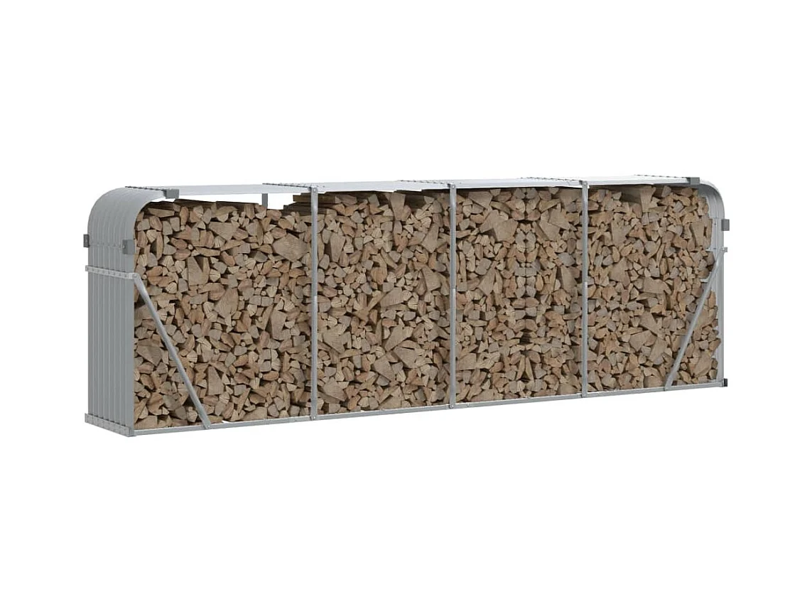 Porte-bûches gris clair 234x45x100 cm acier galvanisé EFVE92869 BonneVie Meuble