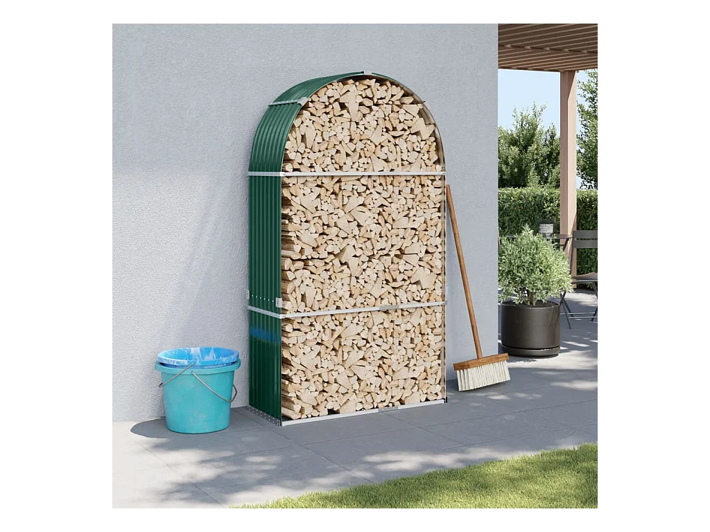 Porte-bûches vert 120x45x140 cm acier galvanisé EFVE61127 BonneVie Meuble