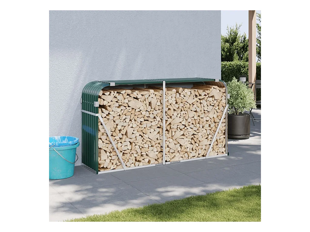 Porte-bûches vert 180x45x100 cm acier galvanisé EFVE33002 BonneVie Meuble