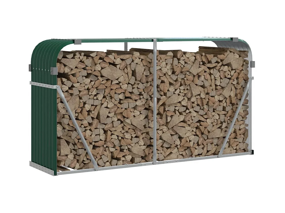 Porte-bûches vert 234x45x100 cm acier galvanisé EFVE55163 BonneVie Meuble