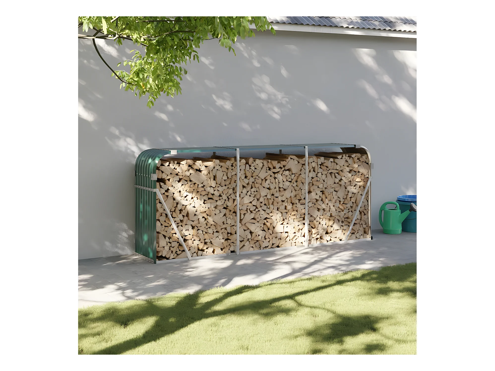 Porte-bûches vert 300x45x100 cm acier galvanisé EFVE87116 BonneVie Meuble