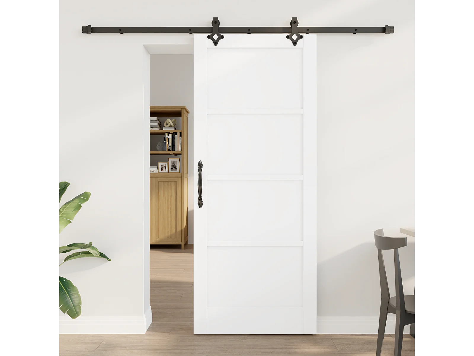 Porte Coulissante avec Kit Matériel en Bois Massif de Pin Blanc