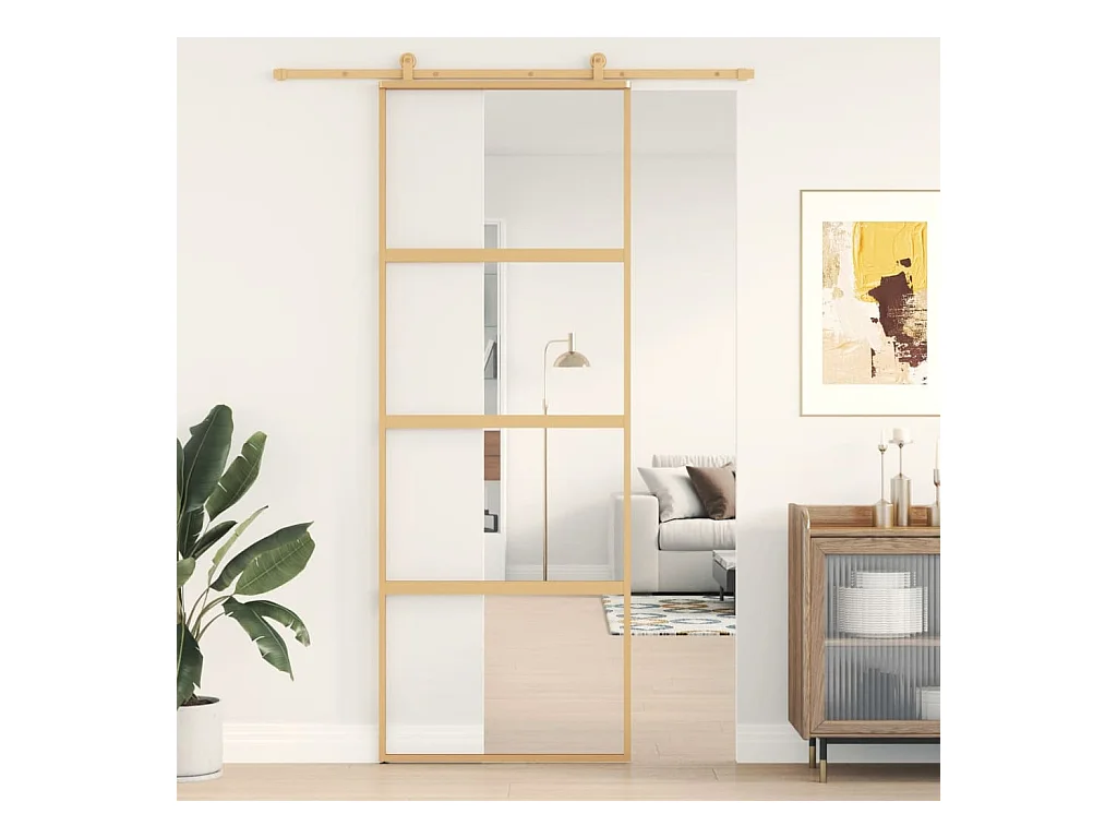 Porte coulissante doré 76x205 cm verre ESG clair et aluminium FR626877