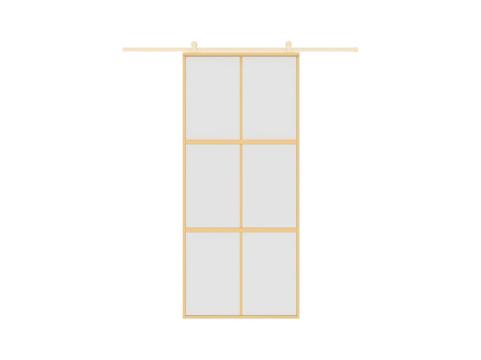Porte coulissante doré 90x205 cm verre ESG dépoli et aluminium FR826655