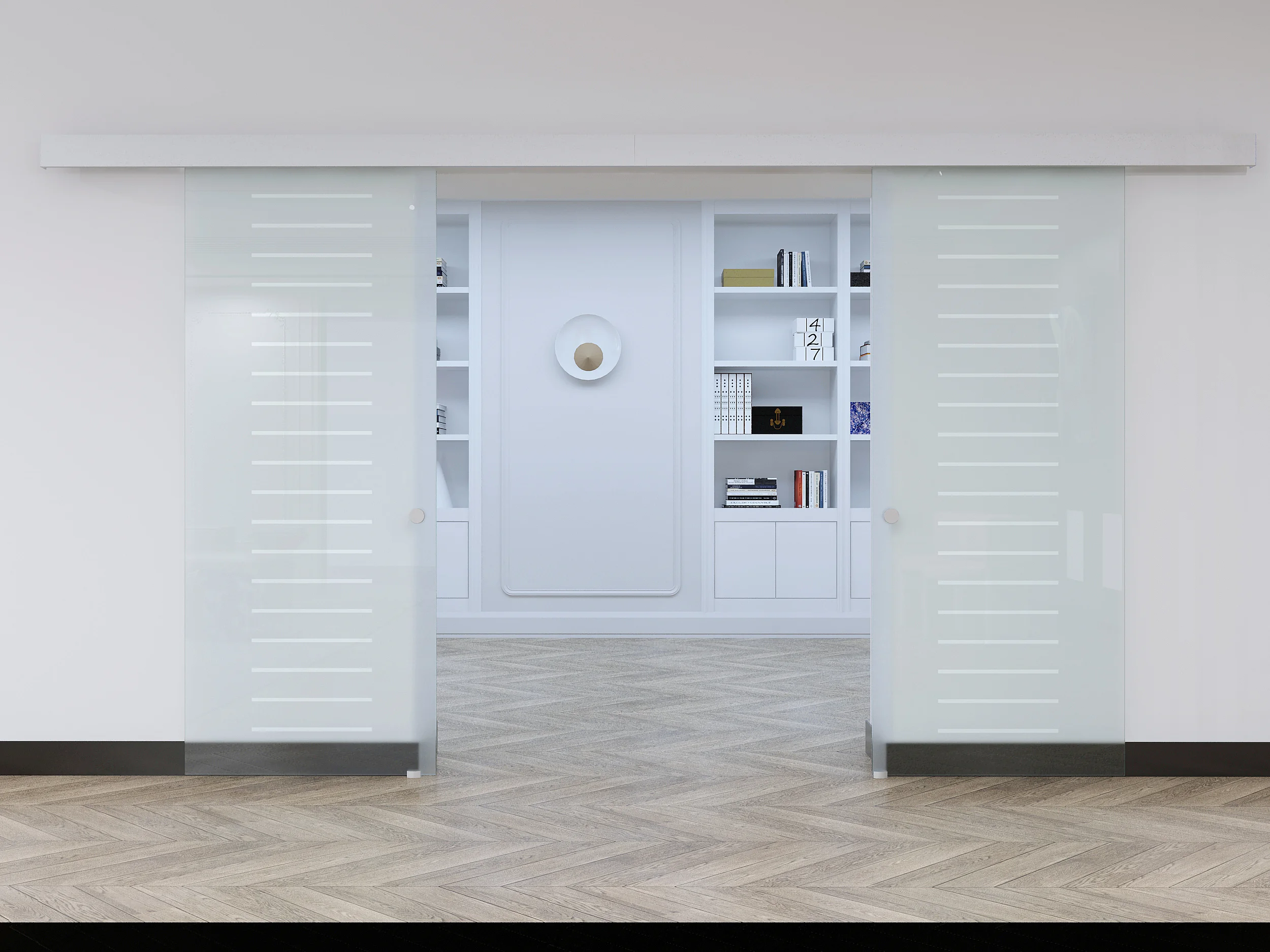 Porte coulissante double avec système en applique - 2 x H205 x L83 cm - Verre trempé dépoli - ASTANA