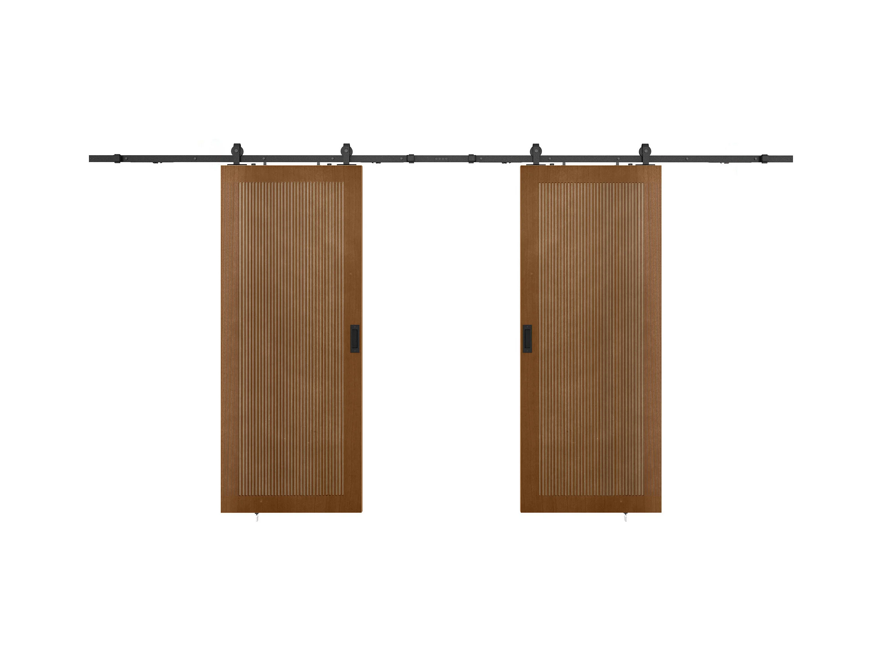 Porte coulissante double avec système en applique en MDF et bois - naturel foncé - 2 x H205 x L83 cm - SANDORA
