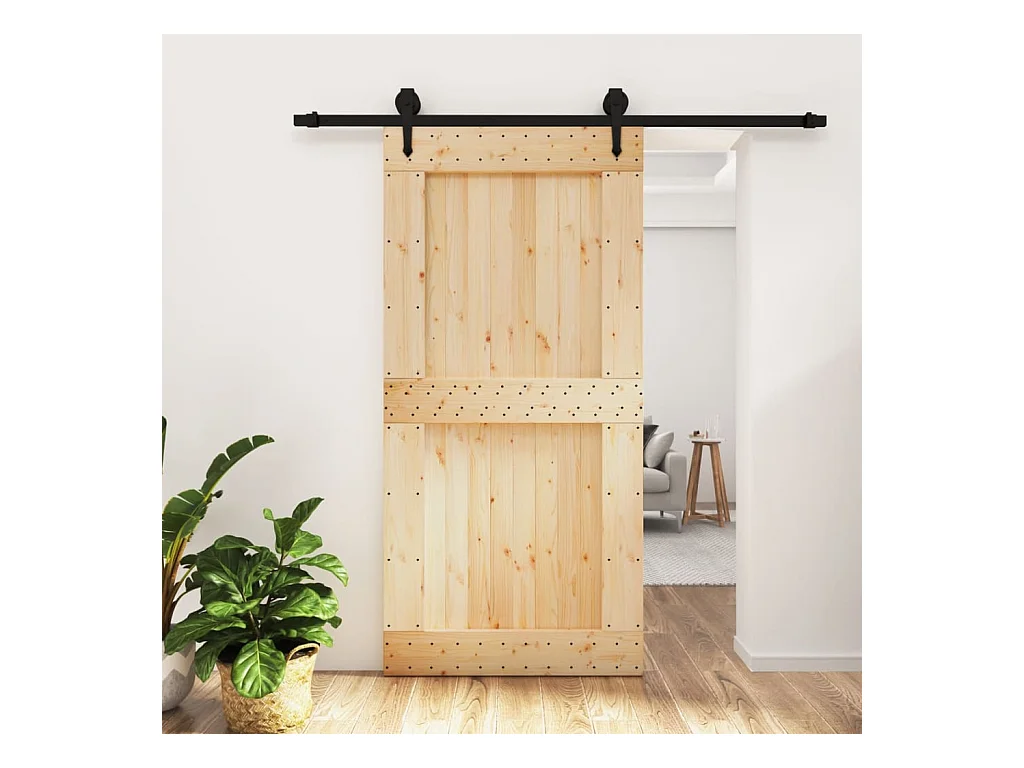 Porte coulissante et kit de quincaillerie 100x210 cm pin massif