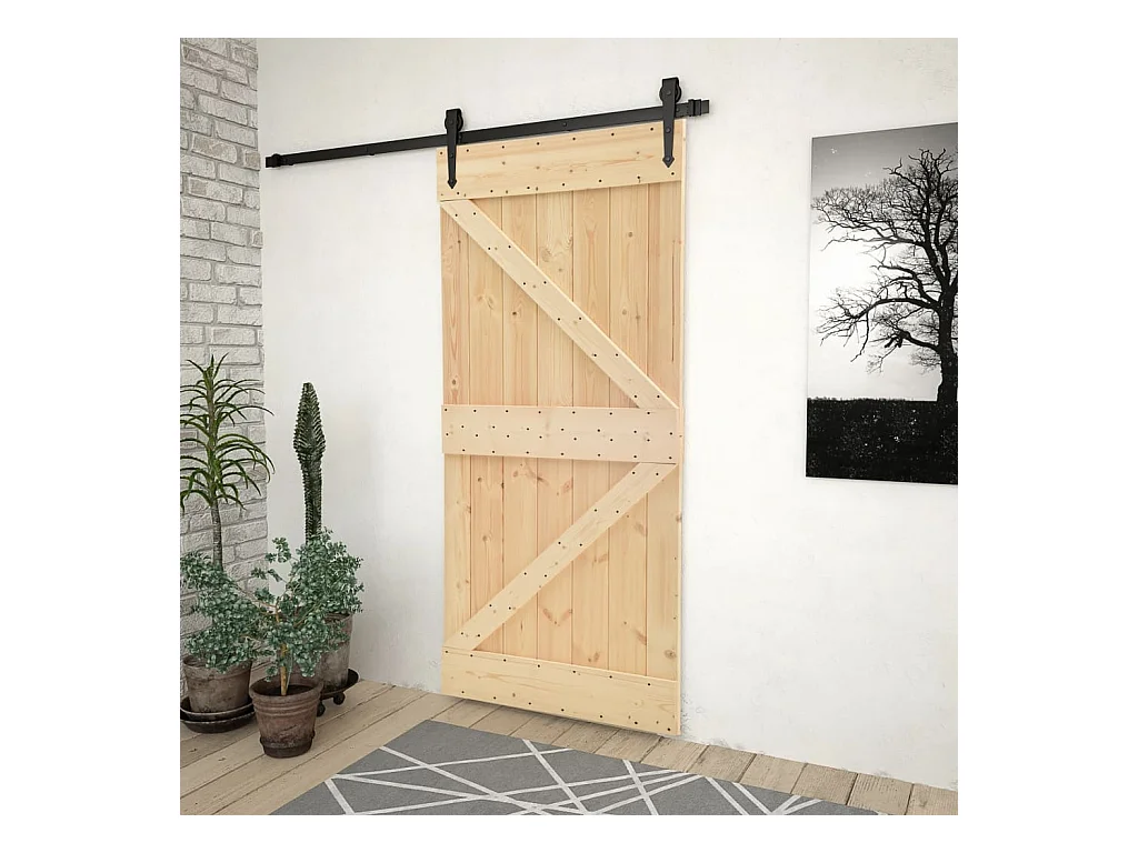 Porte coulissante et kit de quincaillerie 100x210 cm pin massif FR411549