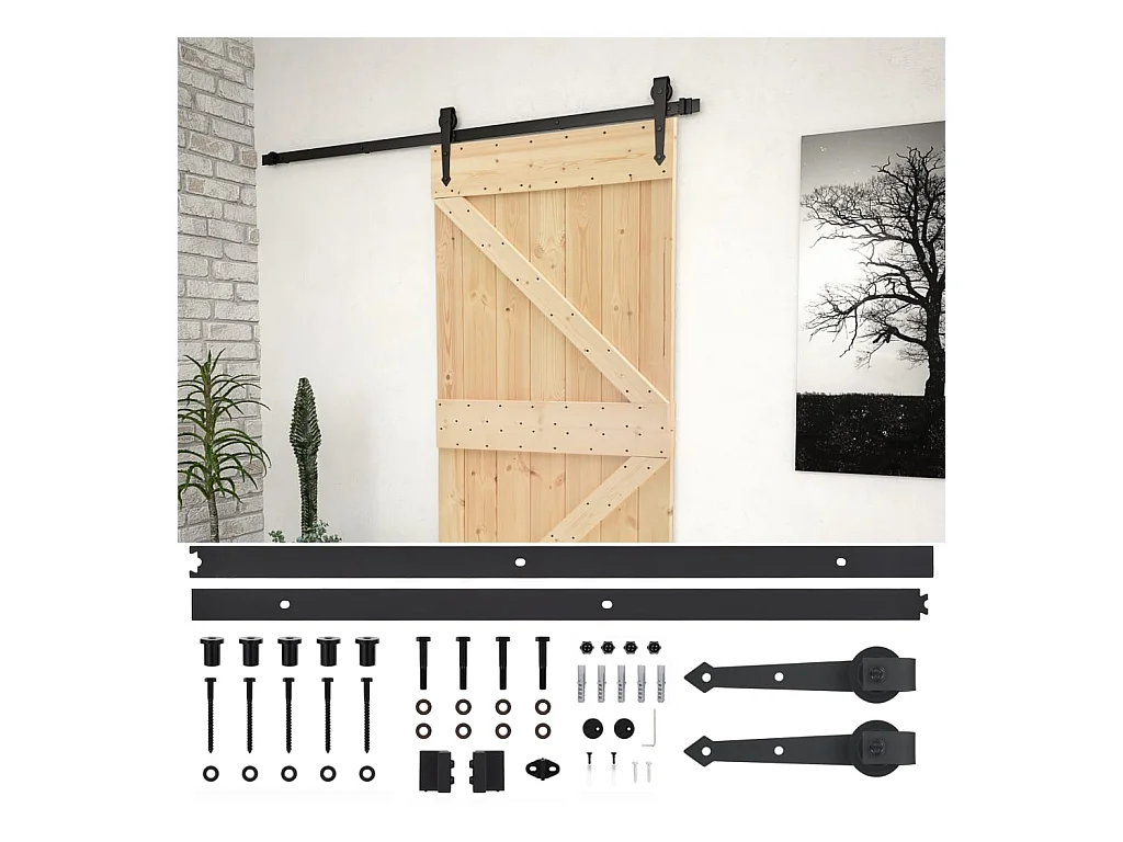 Porte coulissante et kit de quincaillerie 85x210 cm pin massif FR555050