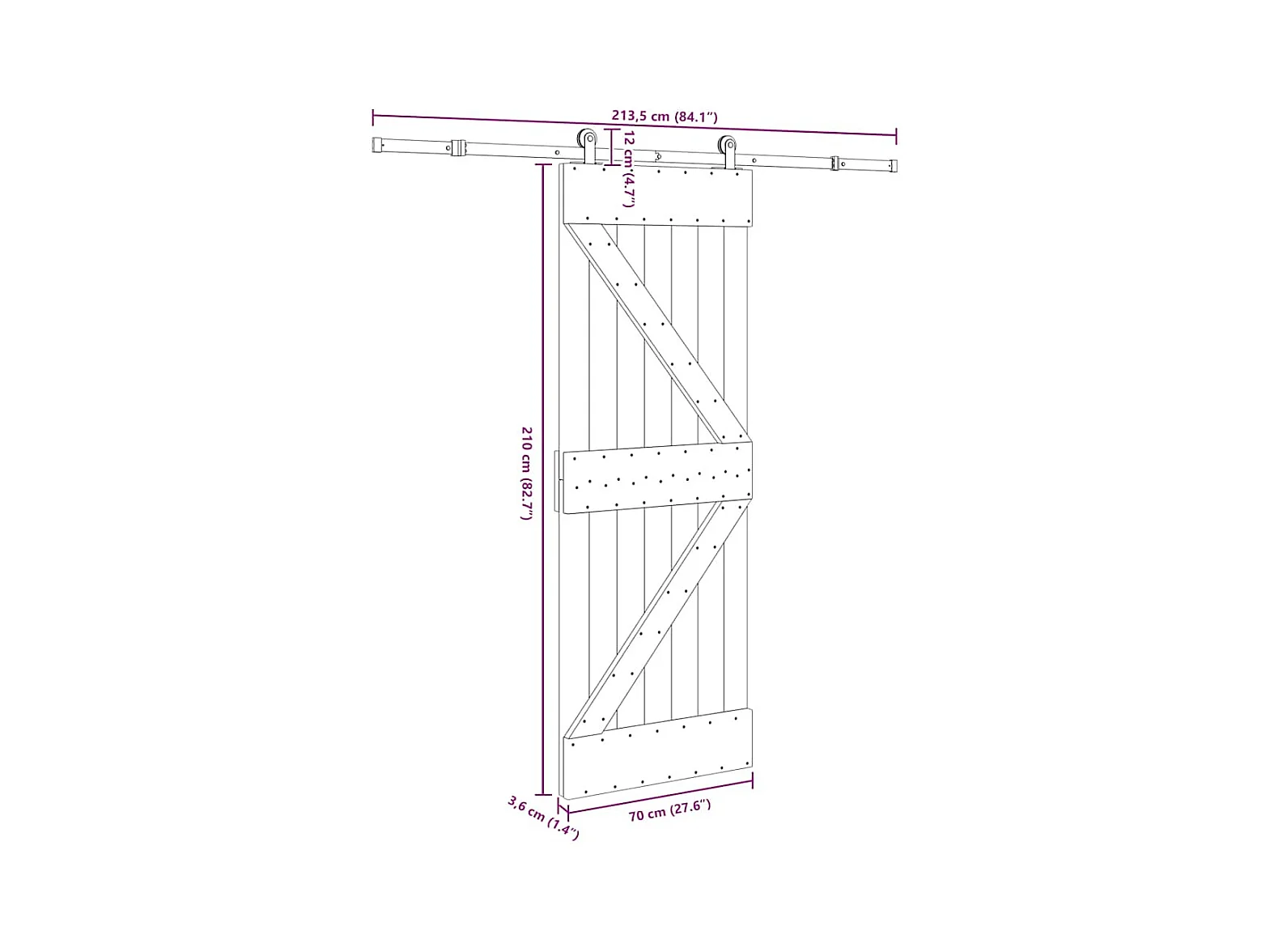 Porte coulissante et kit de quincaillerie 70x210 cm pin massif