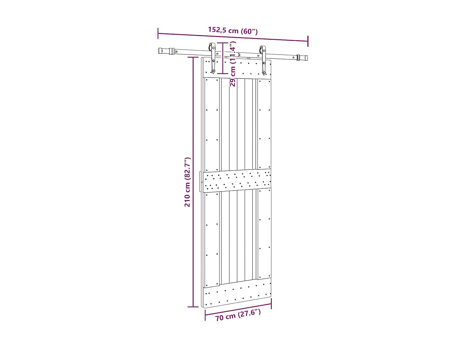 Porte coulissante et kit de quincaillerie 70x210 cm pin massif