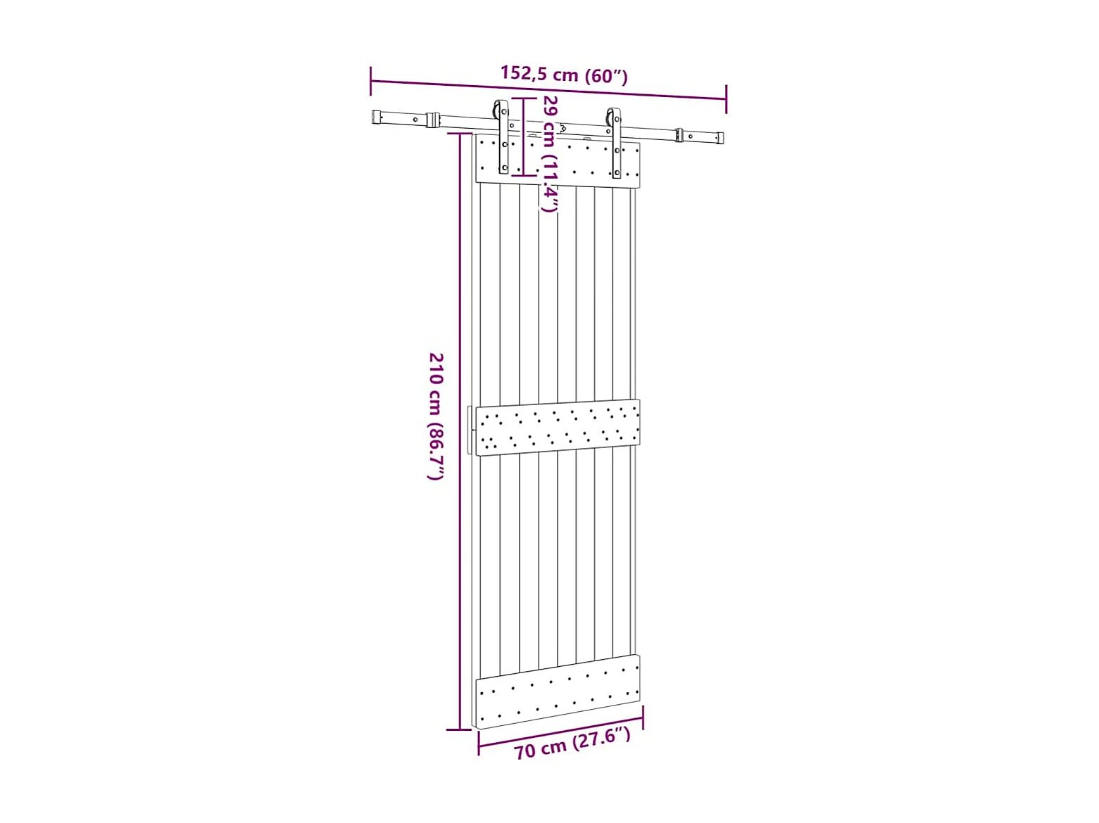 Porte coulissante et kit de quincaillerie 70x210 cm pin massif
