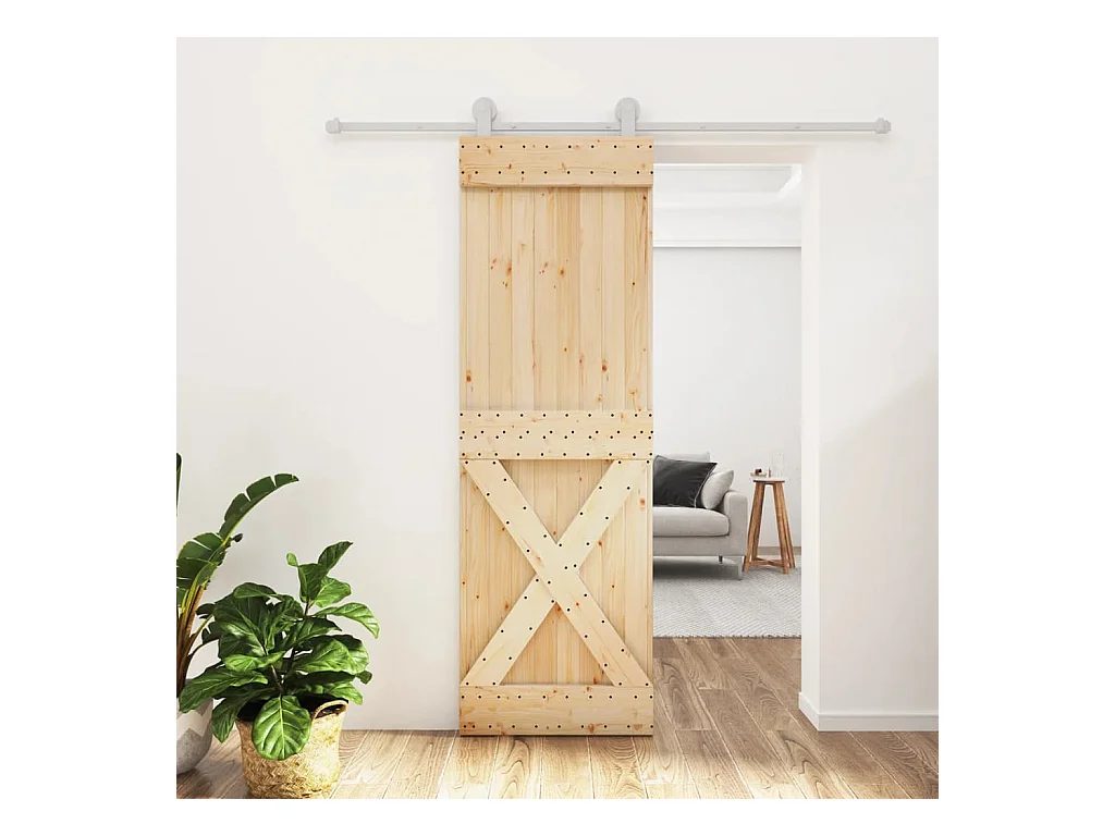 Porte coulissante et kit de quincaillerie 70x210 cm pin massif FR549408