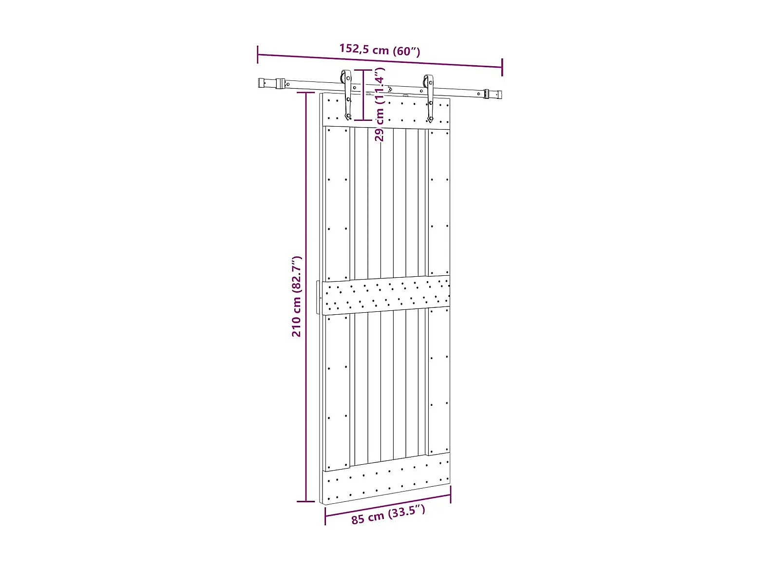 Porte coulissante et kit de quincaillerie 85x210 cm pin massif