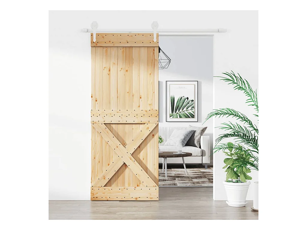 Porte coulissante et kit de quincaillerie 85x210 cm pin massif FR756560