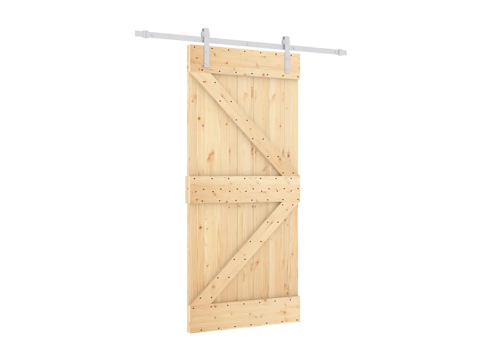 Porte coulissante et kit de quincaillerie 90x210 cm pin massif FR510646