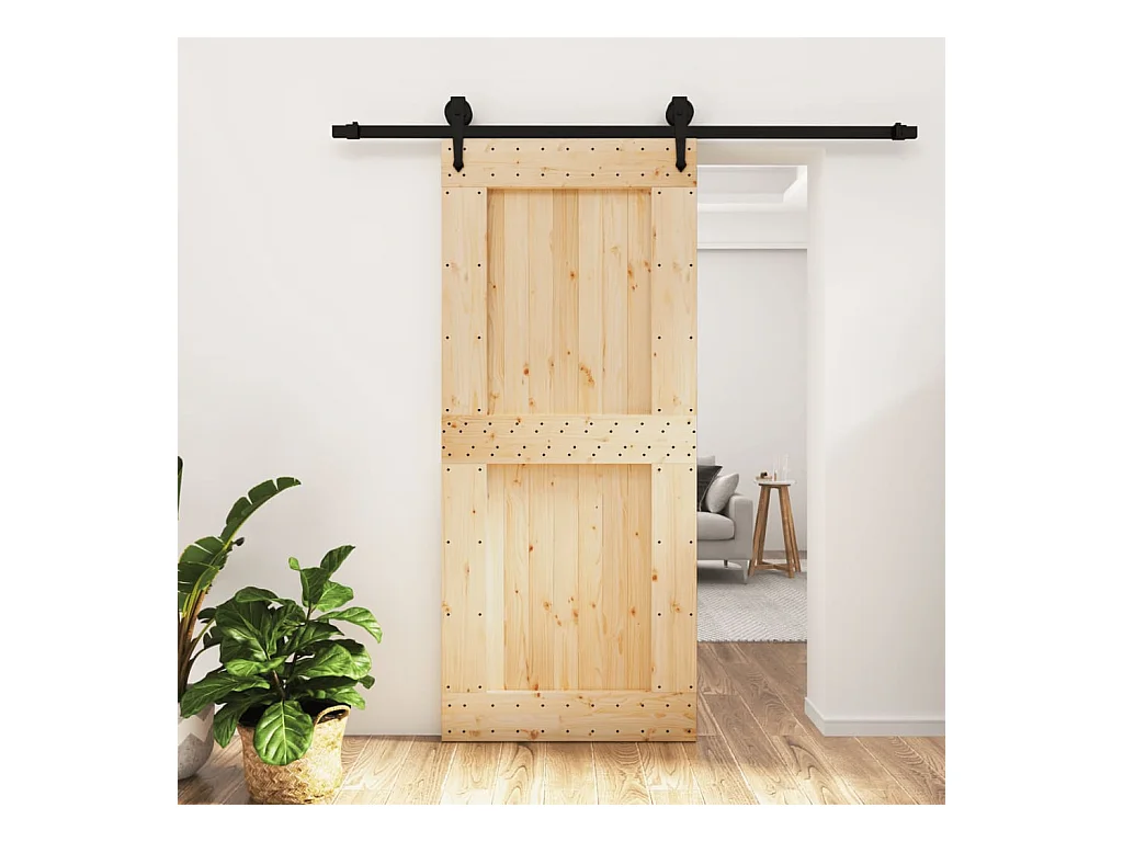 Porte coulissante et kit de quincaillerie 90x210 cm pin massif FR510646
