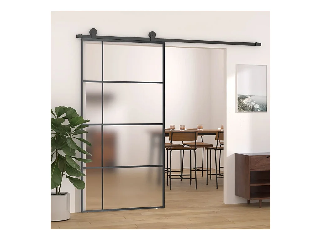Porte coulissante Verre ESG dépoli et aluminium 90x205 cm Noir FR240635