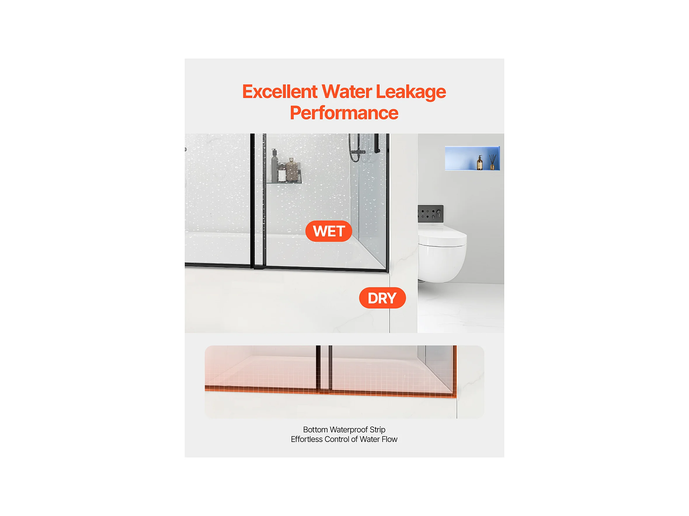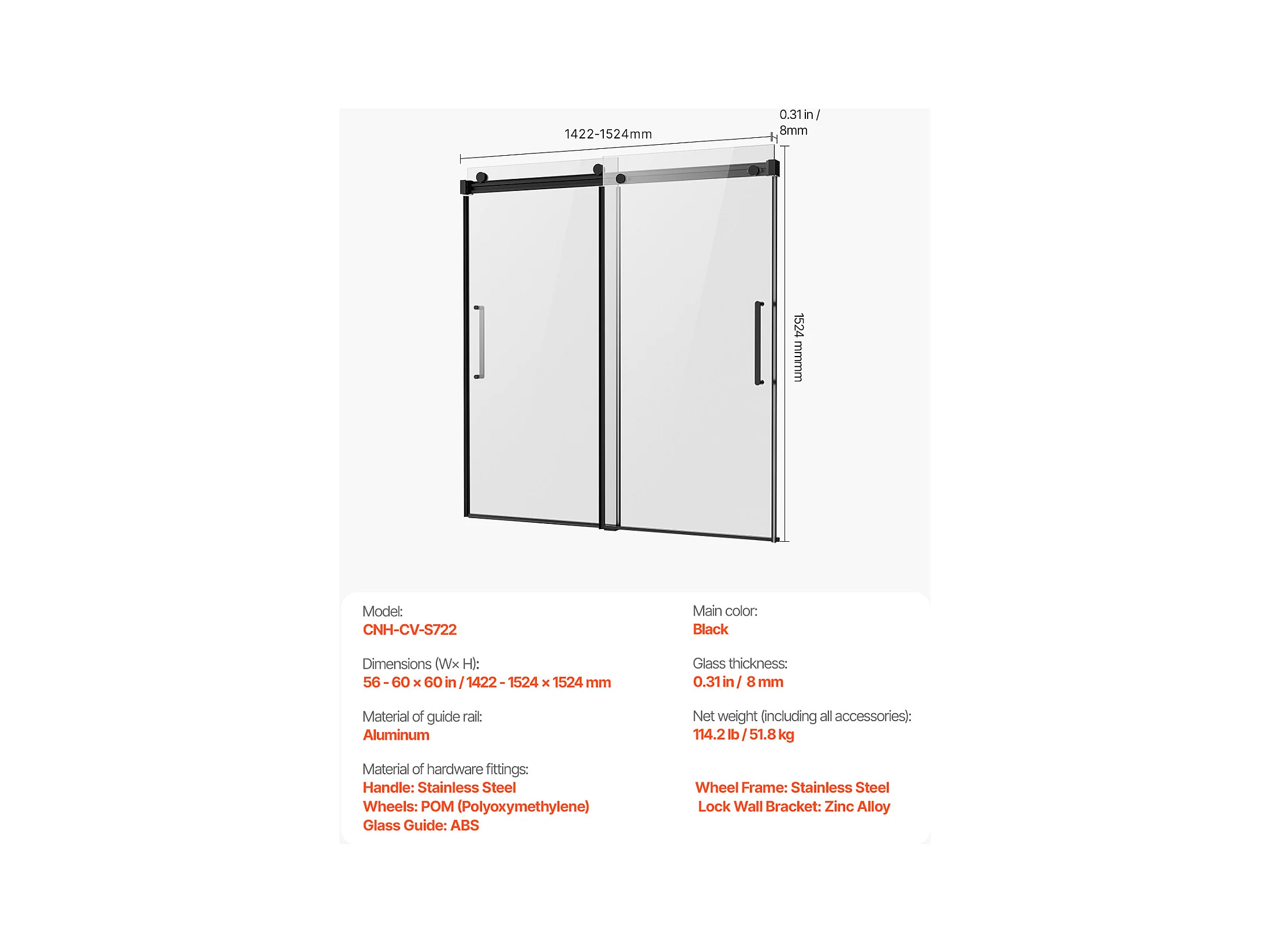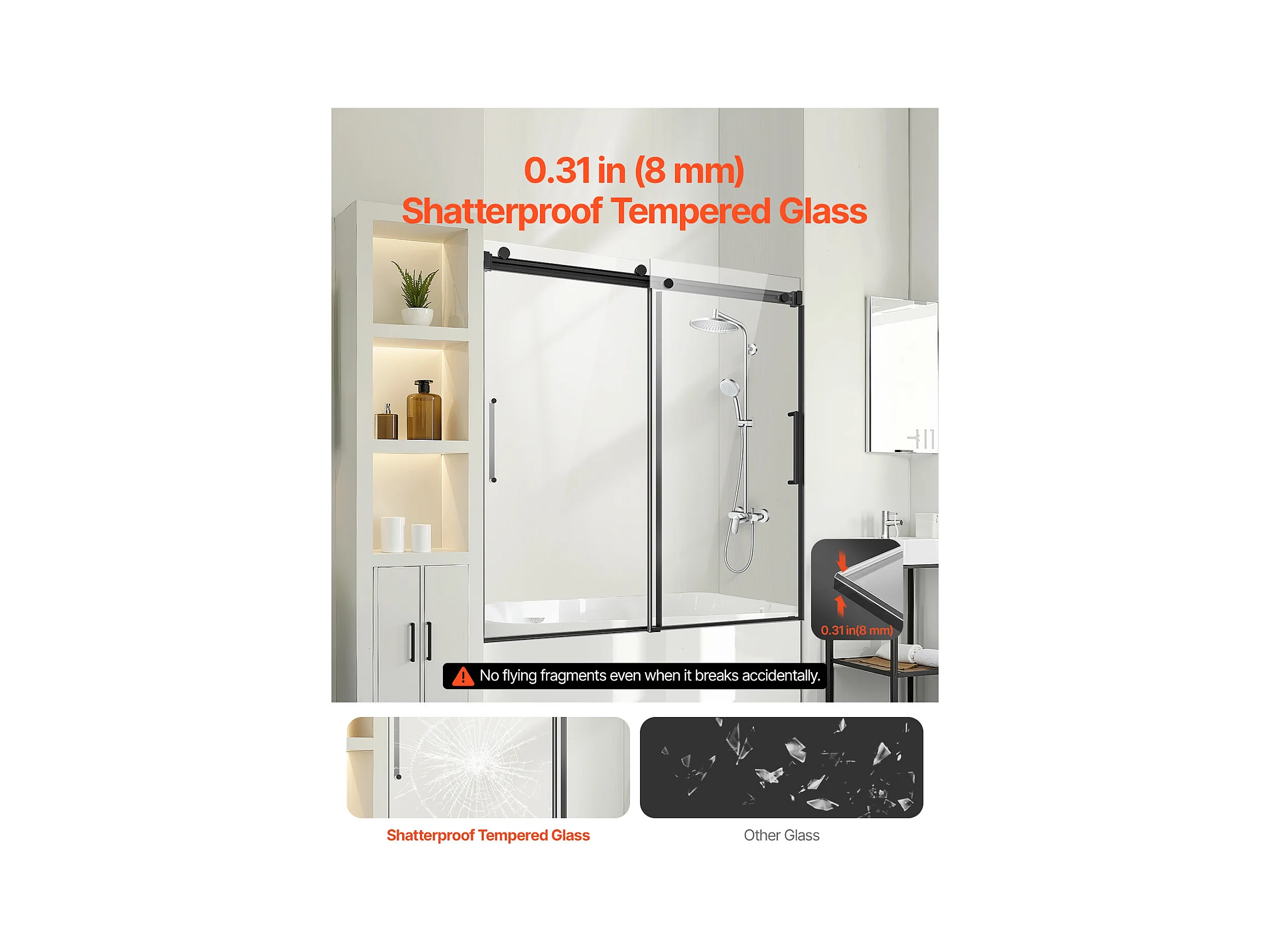 Porte de Baignoire SucceBuy, Coulissante Sans Cadre, 142 à 152 cm L x 152 cm H, en Verre pour Salle de Bain