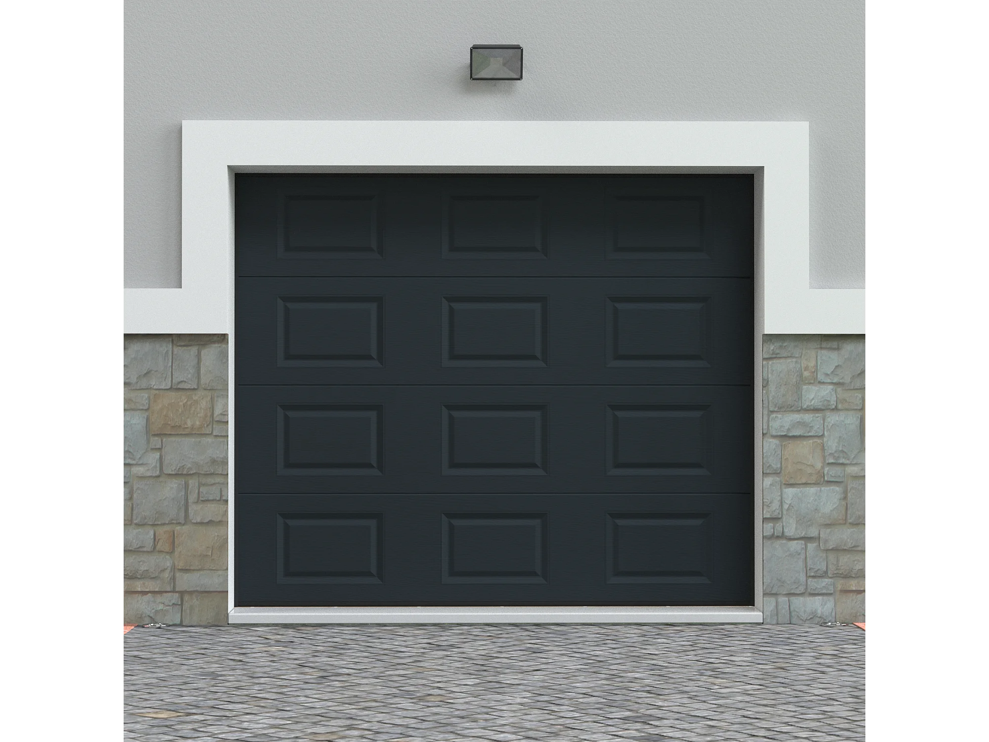 Porte de garage sectionnelle à cassette anthracite avec moteur Somfy L254 x H218 cm - CAOPAS
