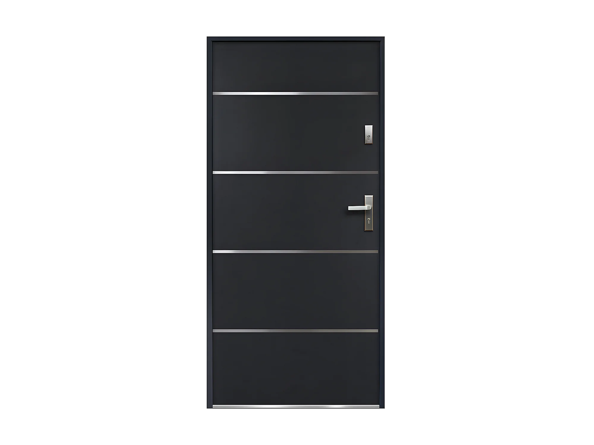 Porte d'entrée en acier pleine et inox H207 x L100 cm anthracite - poussant gauche - NAXARA
