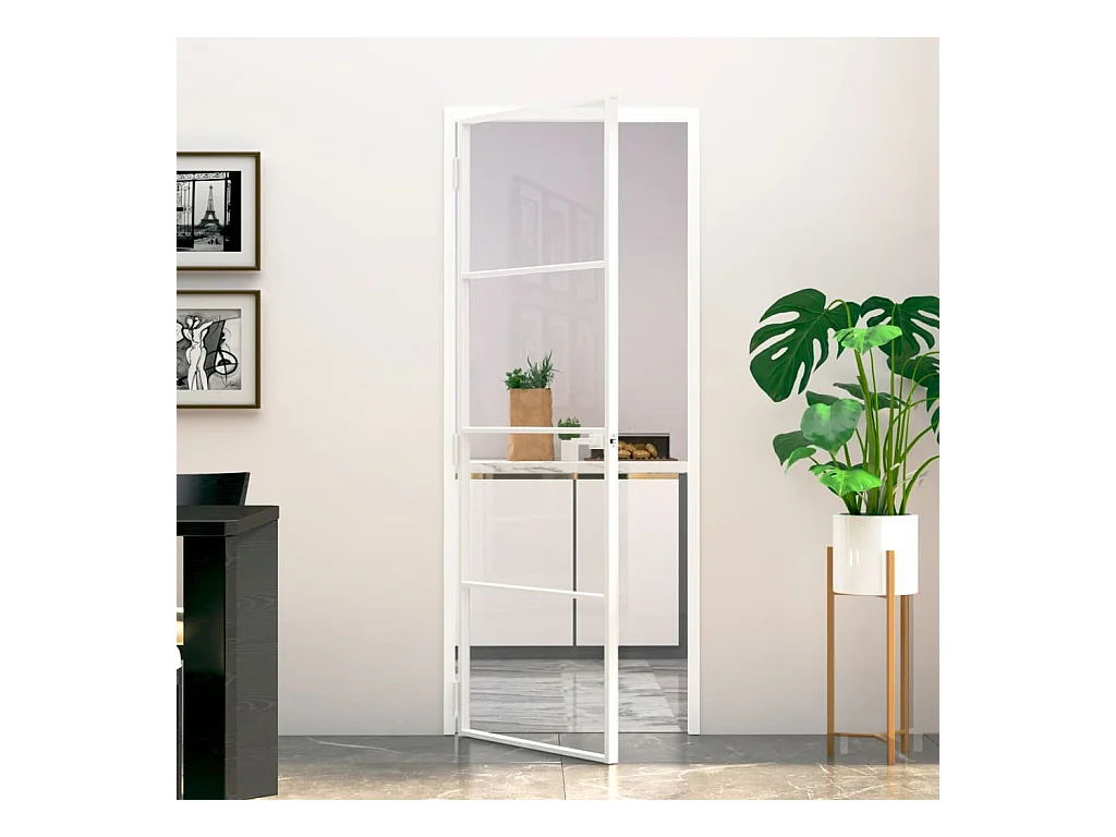 Porte d'intérieur Blanc 83x201,5 cm Trempé verre aluminium fin FR332794