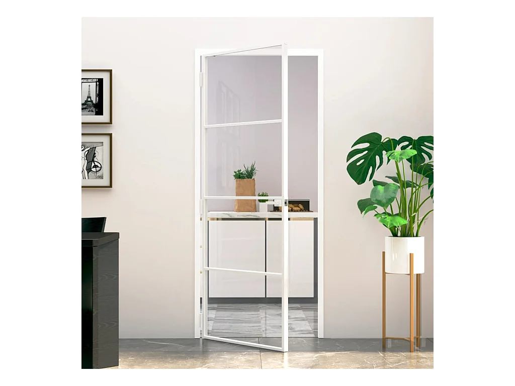 Porte d'intérieur Blanc 83x201,5 cm Trempé verre aluminium fin FR332794
