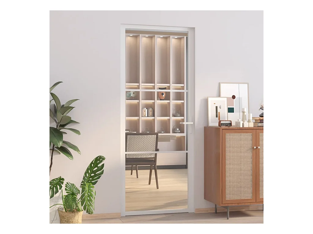 Porte d'intérieur Blanc 83x201,5 cm Trempé verre aluminium fin FR332794