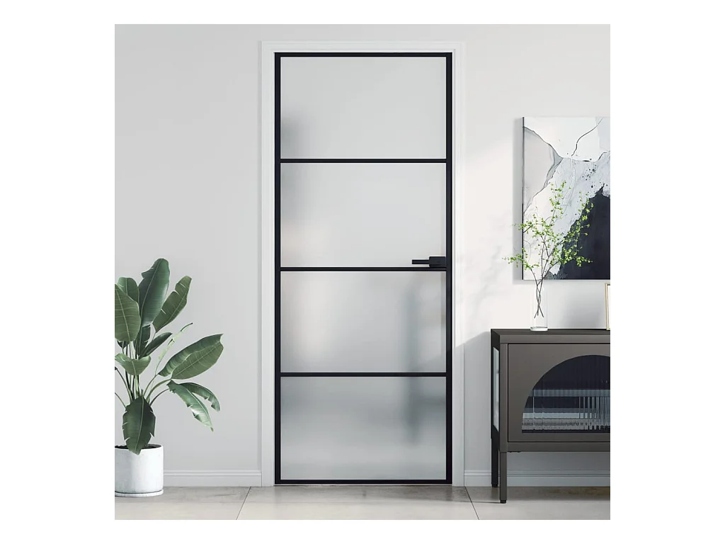 Porte intérieure 83x201,5 cm Noir Verre mat et aluminium FR395599