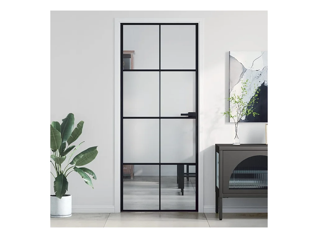 Porte intérieure mince noir 83x201,5 cm verre trempé aluminium FR626684