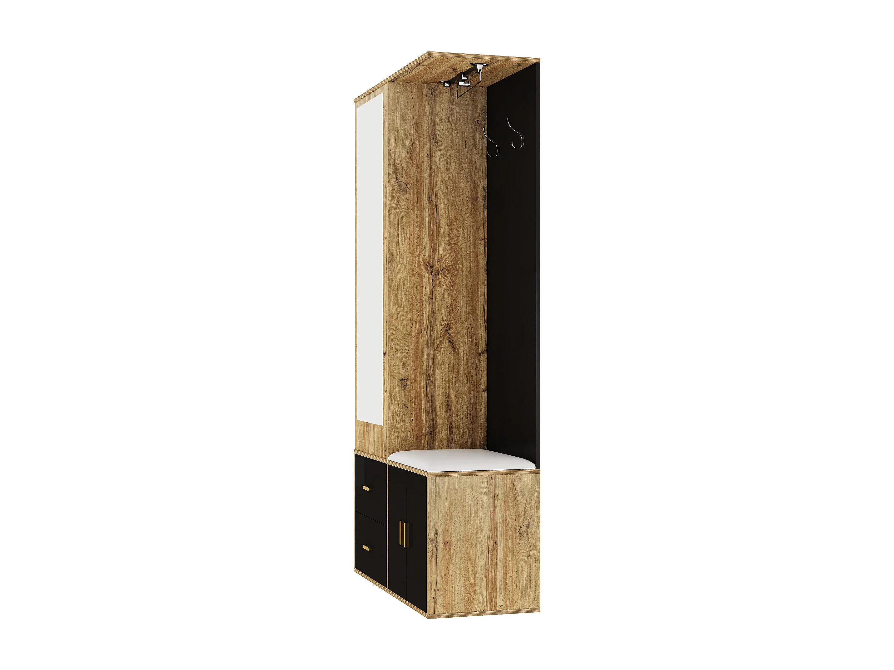 Porte-manteau noir avec 1 porte et 4 espaces de rangement ouverts, 6 crochets - pour l'entrée