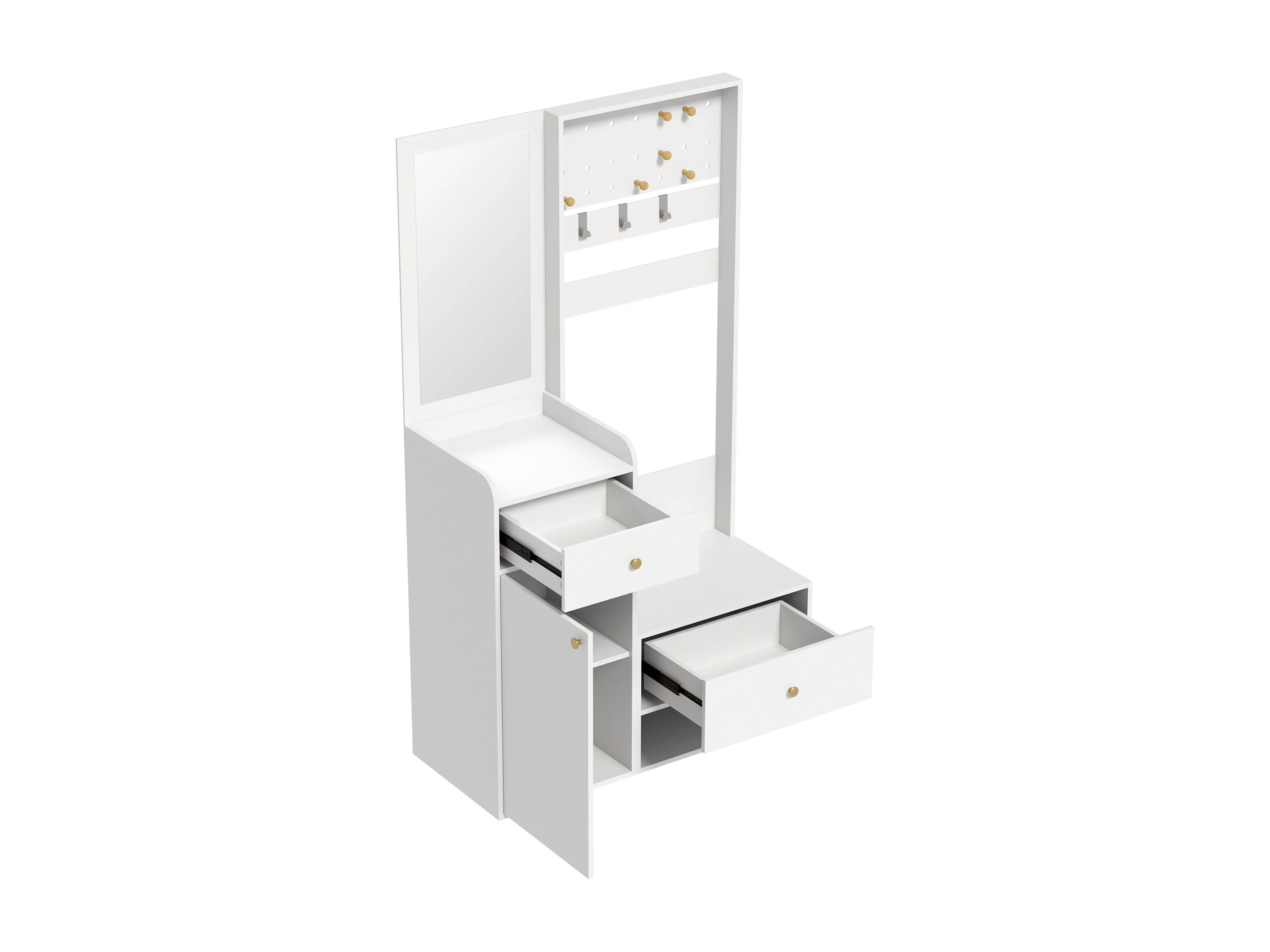 Porte-manteau blanc avec 2 portes et 1 tiroir de rangement, poignées et pieds dorés