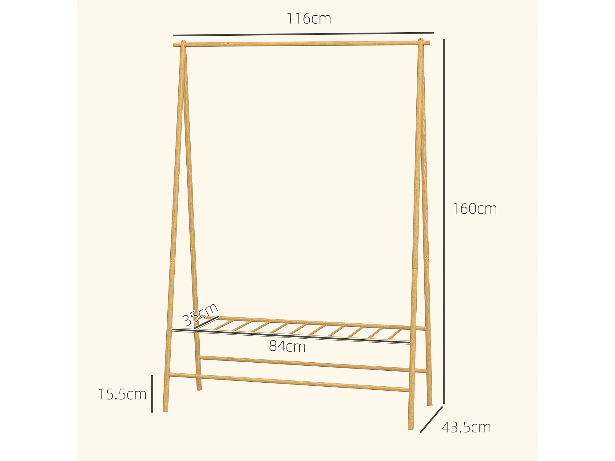 Porte-manteau en bambou avec étagères et crochets, bois naturel, stable et pratique (116x43.5x160cm)