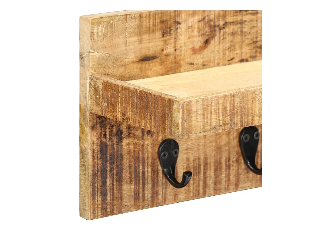 Porte-manteau mural 60x15x20 Bois de manguier brut solide