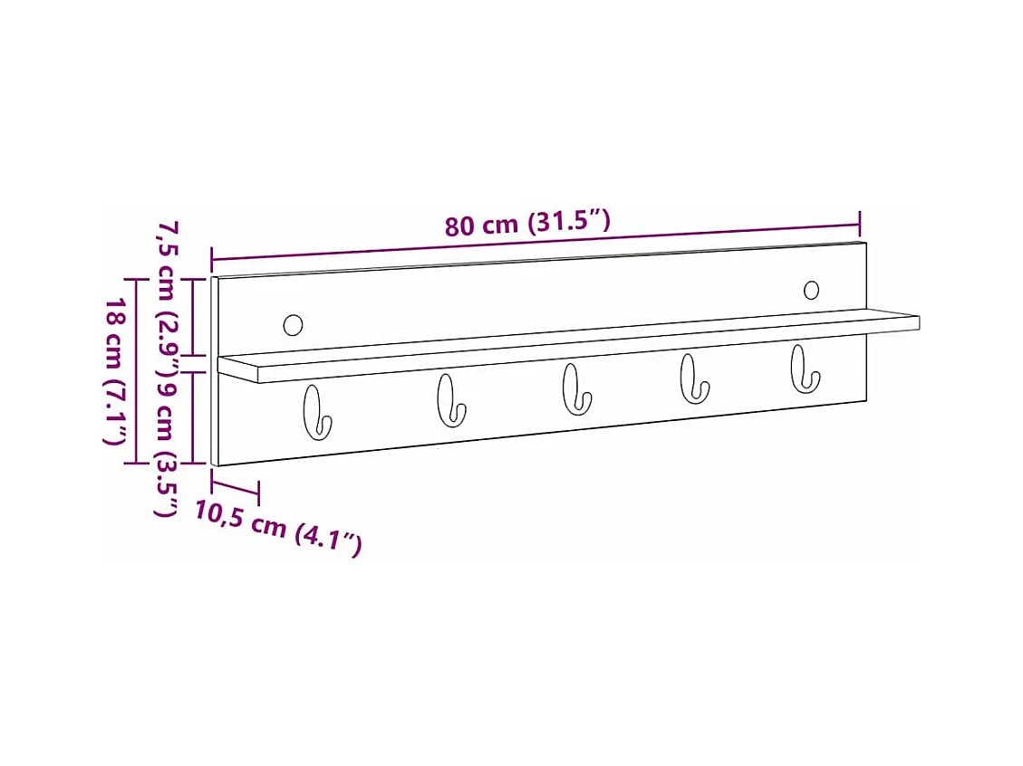 Porte-manteau mural avec étagère Chêne sonoma 80 x 10.5 x 18 cm