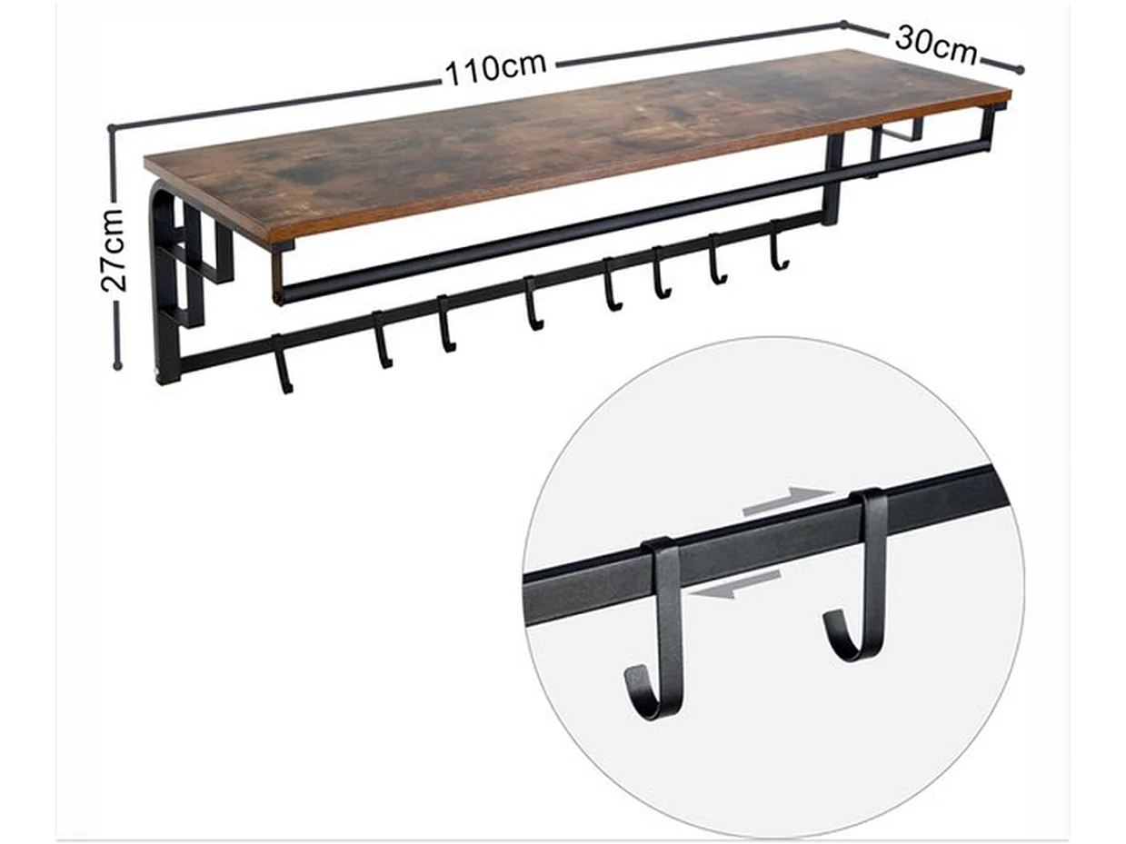 Porte-manteau mural Furnilux - Marron 110x30x27 cm - 8 crochets et étagère