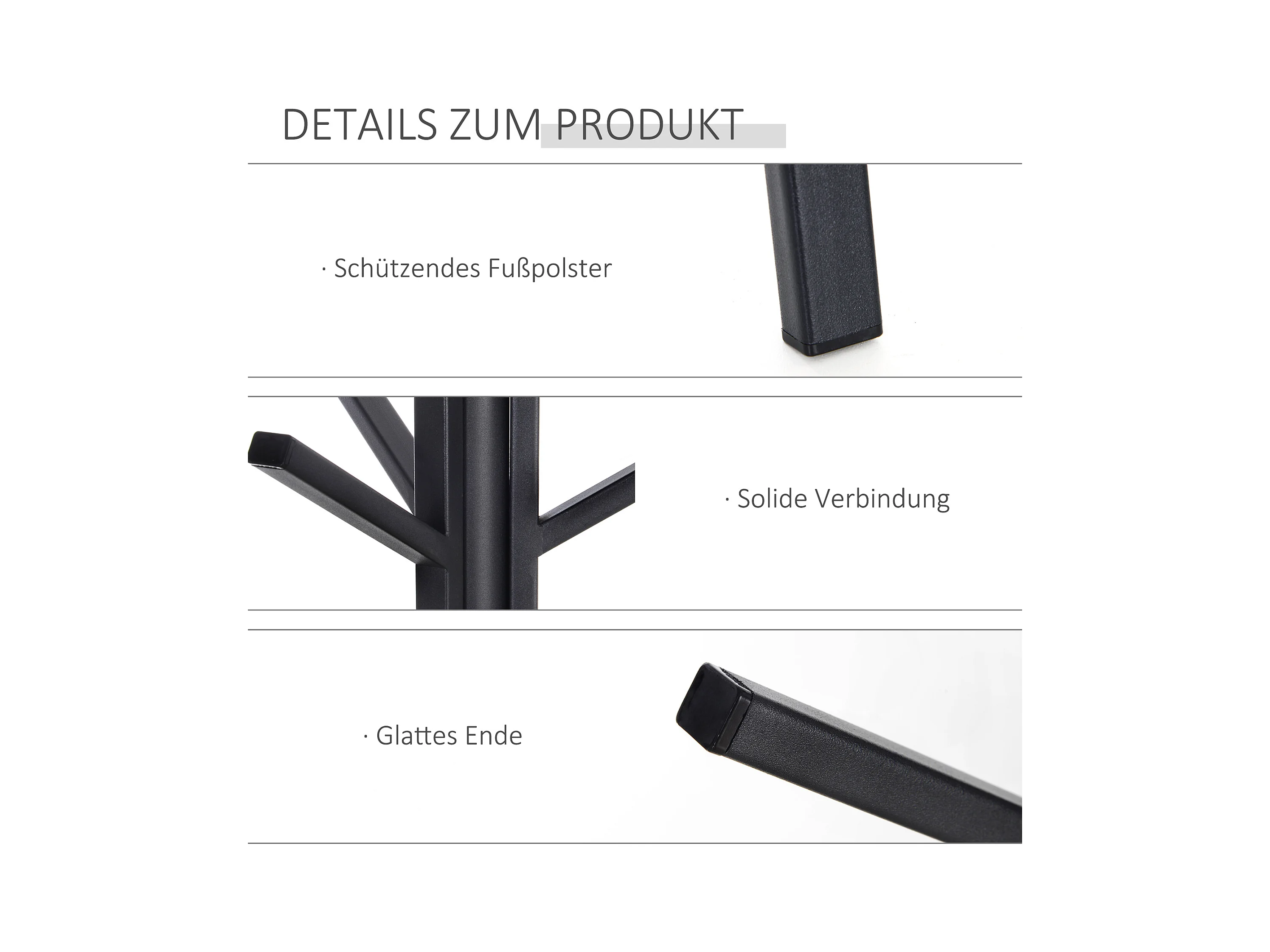 Porte-manteau sur pied élégant, structure métal et MDF, noir, design scandinave stable (45x45x180cm)