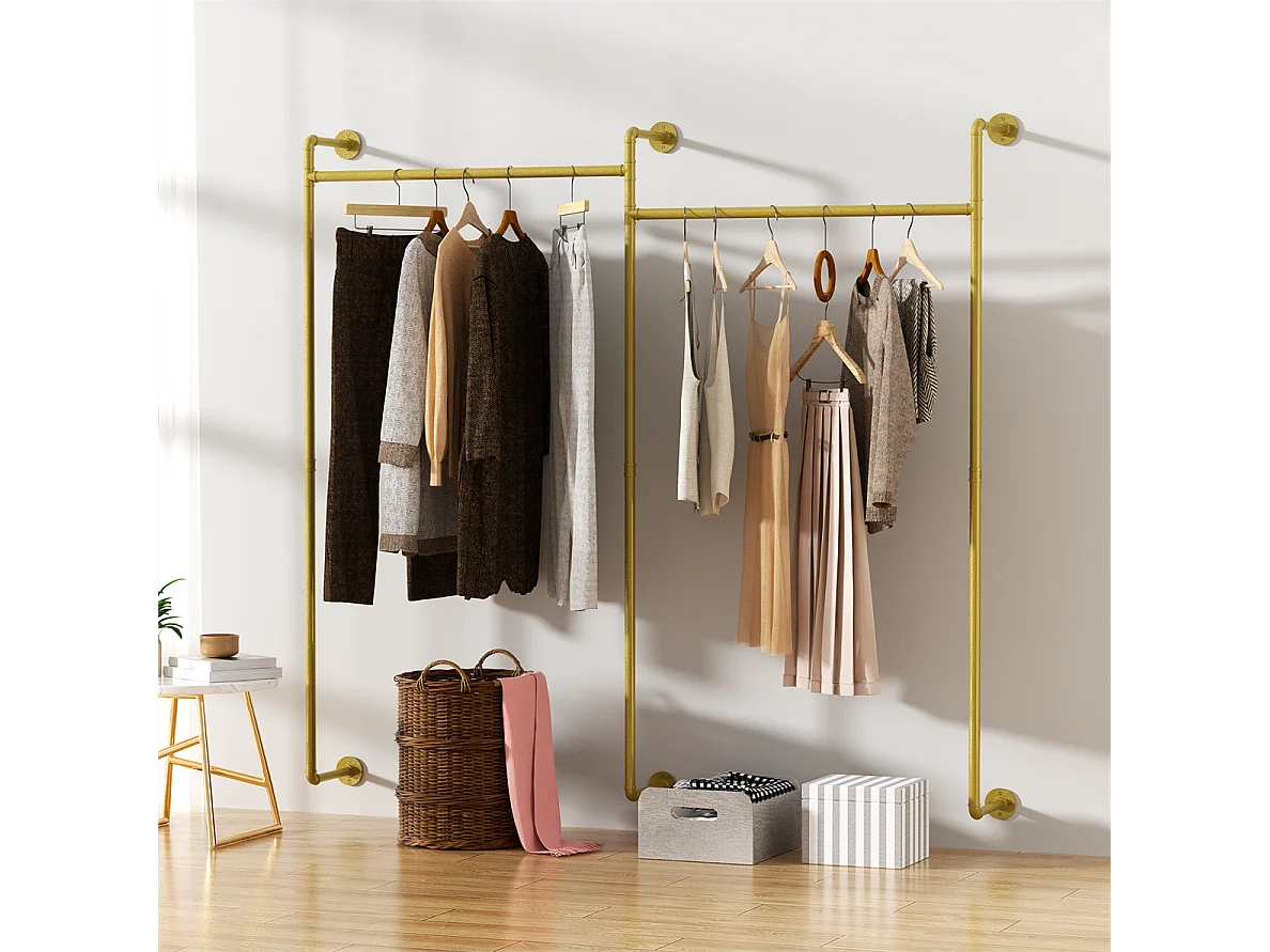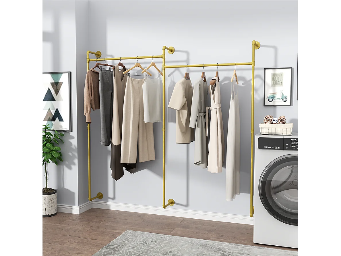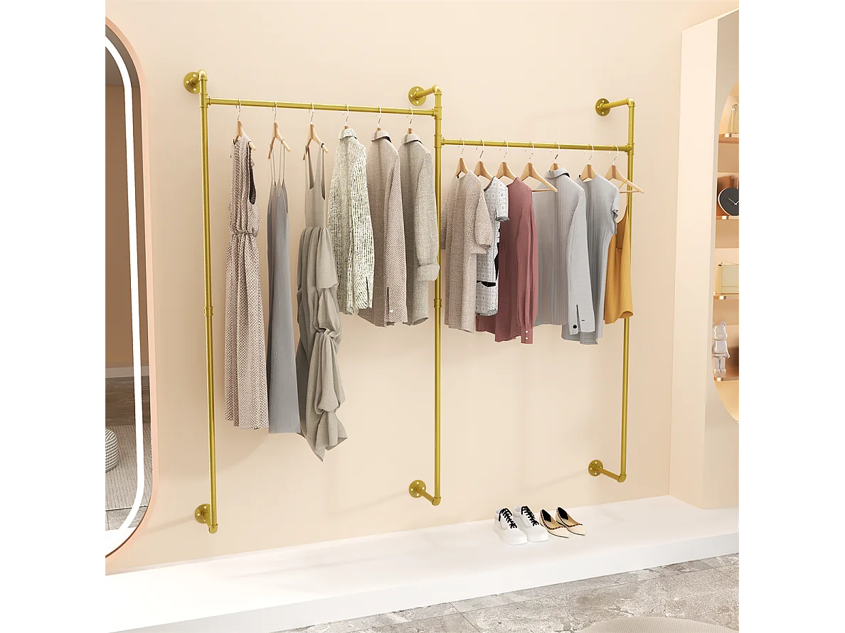 Porte-manteaux en métal doré mural Barre de penderie Portant à vêtement 205x190cm