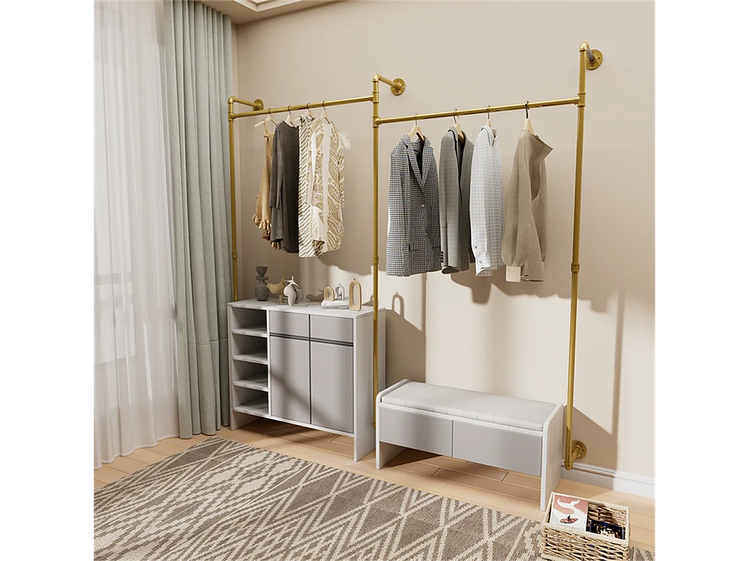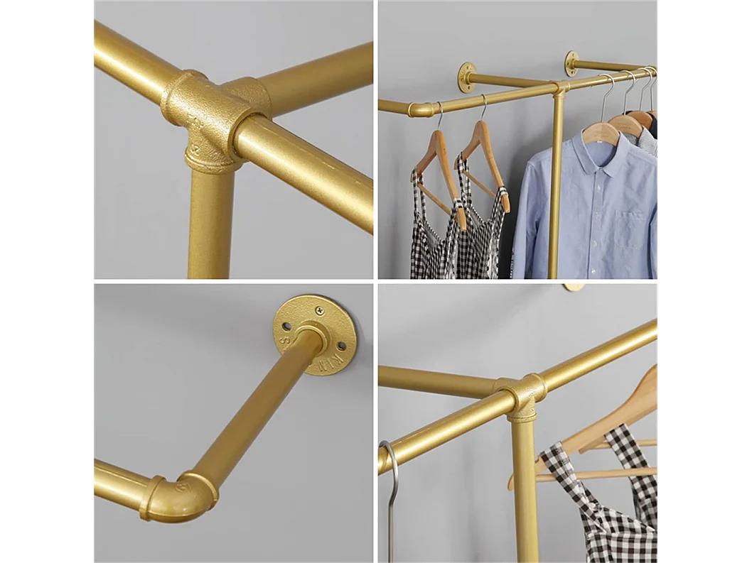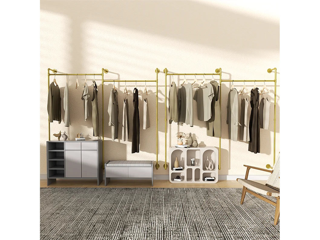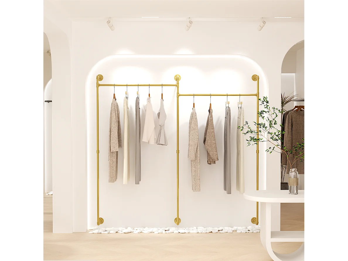 Porte-manteaux en métal doré mural Barre de penderie Portant à vêtement 205x190cm