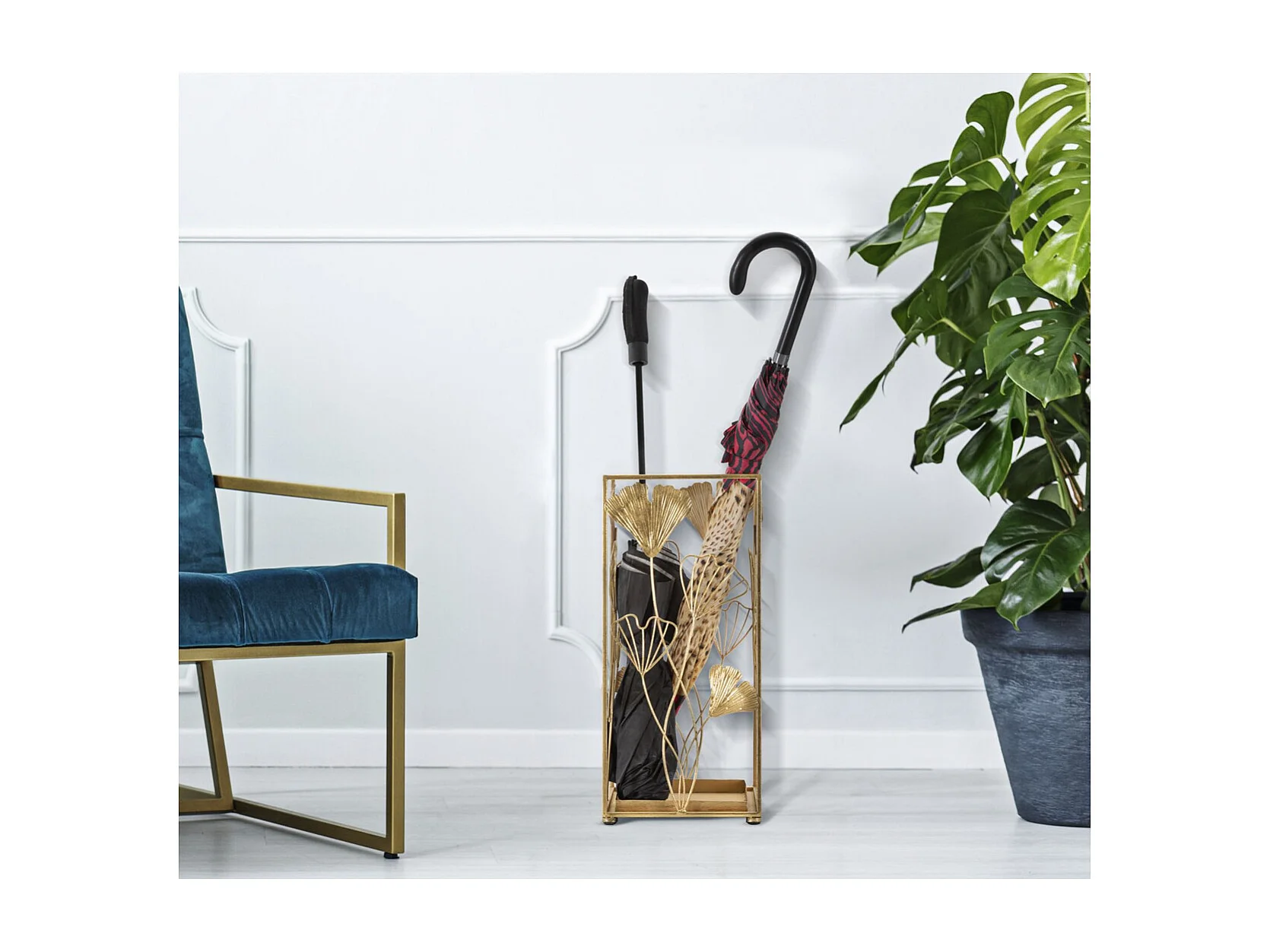 Porte-Parapluie Feuille 59, Or, 22,5x22,5x48,5 cm, Seven Design