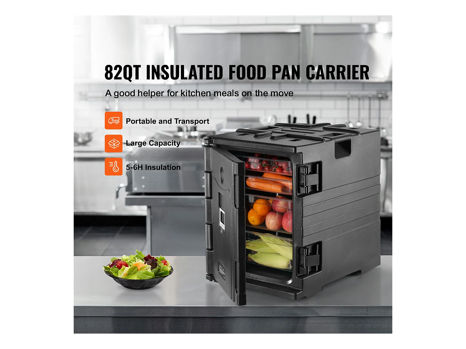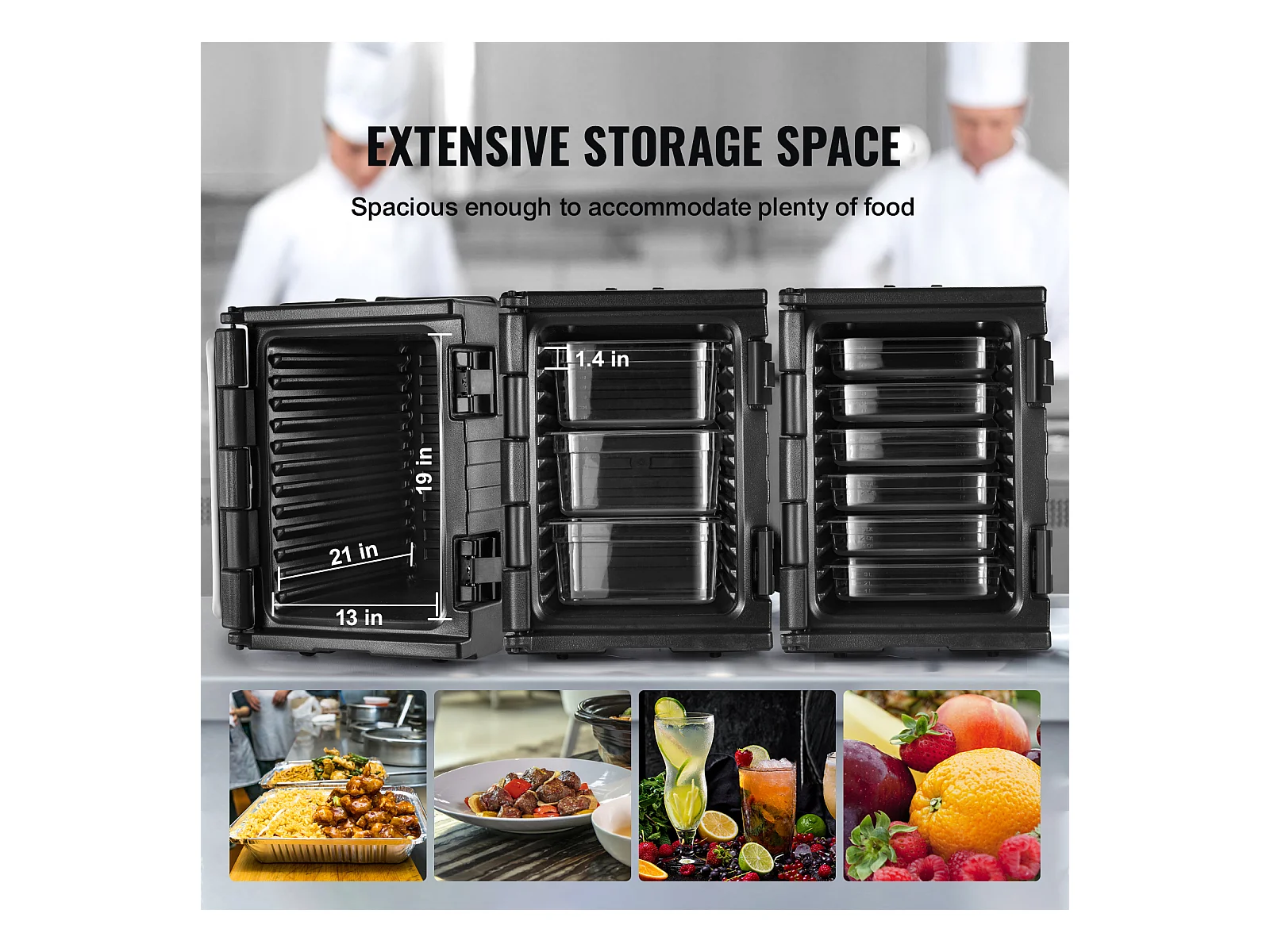 Porte-Plateau Isolé SucceBuy, 82 Qt, Chargement Frontal, Empilable, Boîte de Restauration, Noir