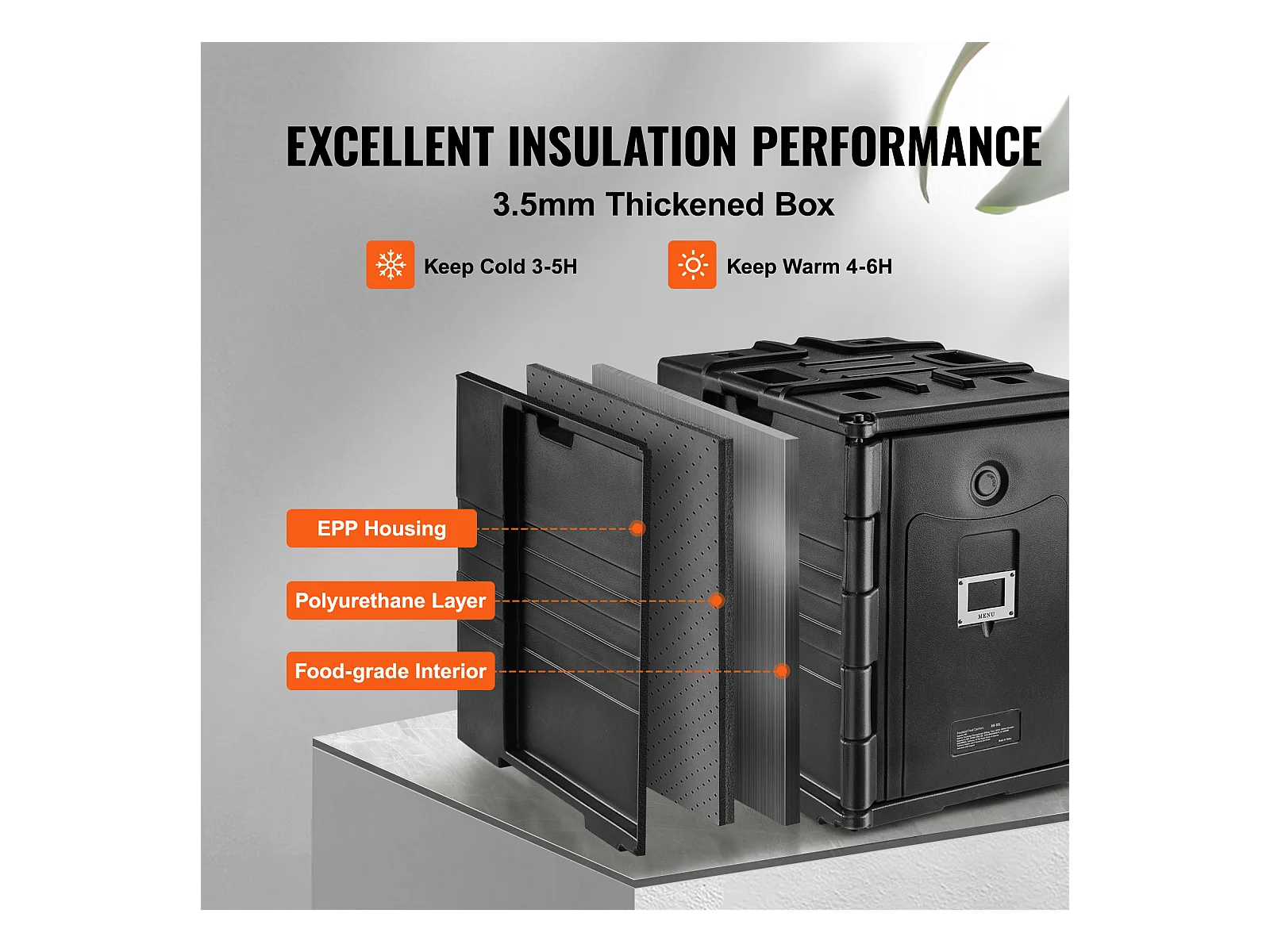 Boîte de Transport Isolé SucceBuy, Conteneur Alimentaire Isolé 78 L, Transport Portable Noir à Chargement Frontal