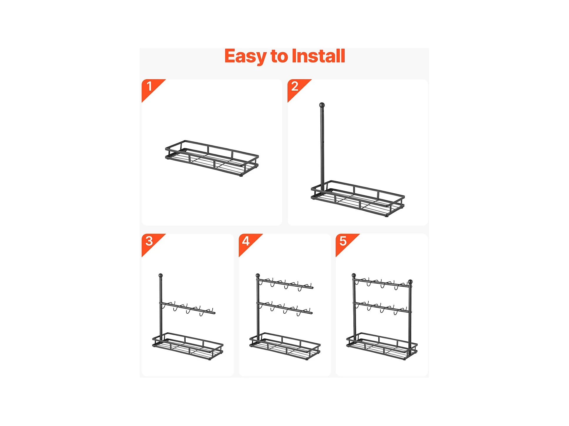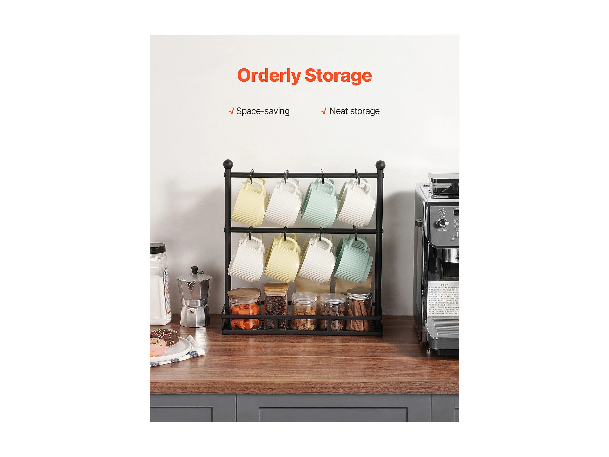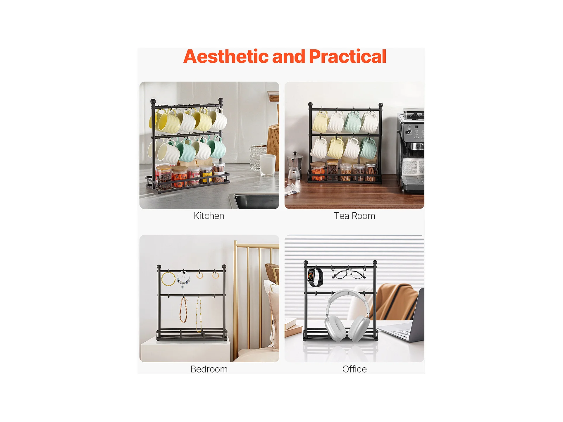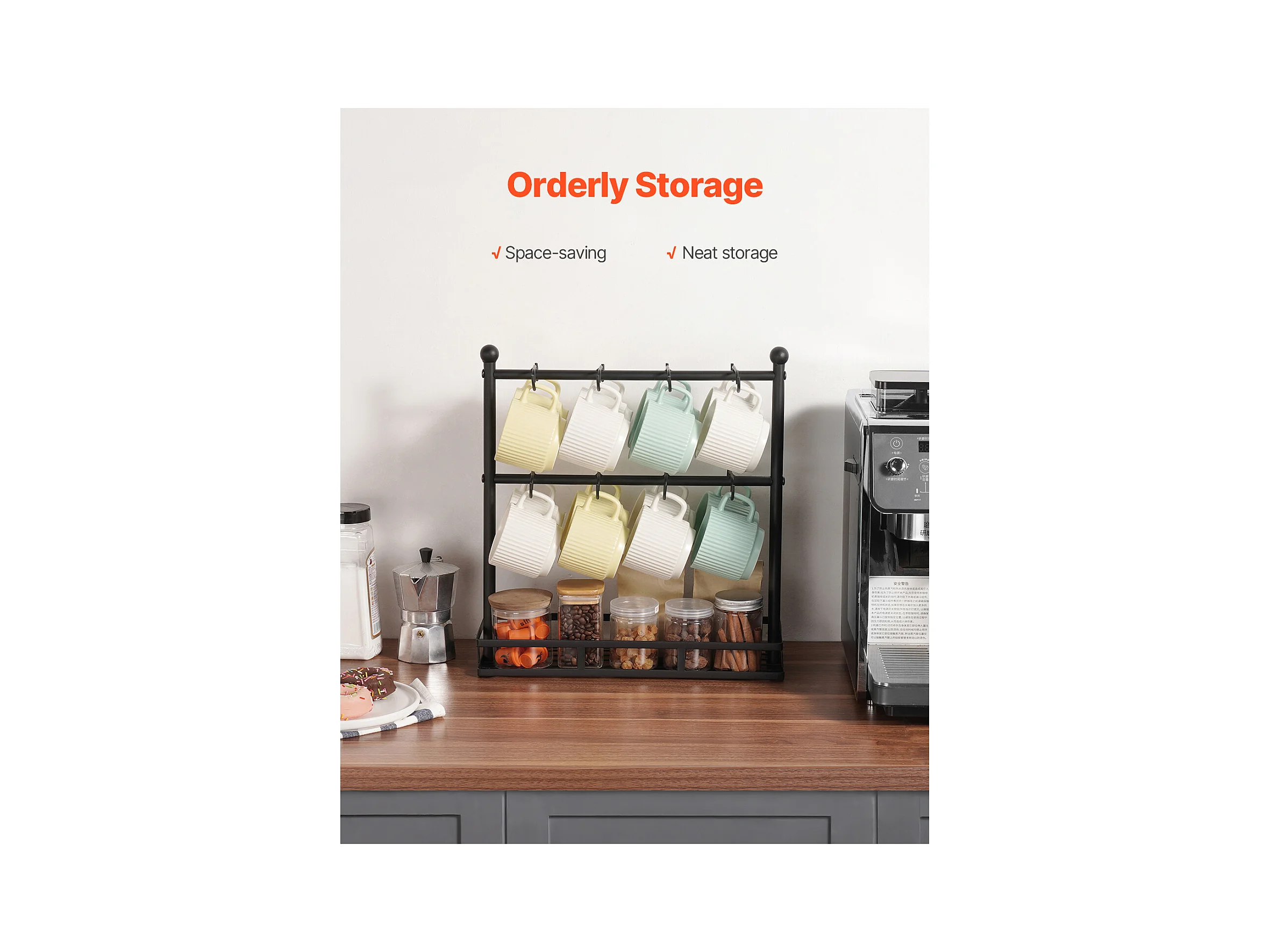 Porte-Tasses SucceBuy Organisateur de Bar à Café à 2 Niveaux pour Comptoir, 12 Crochets Mobiles